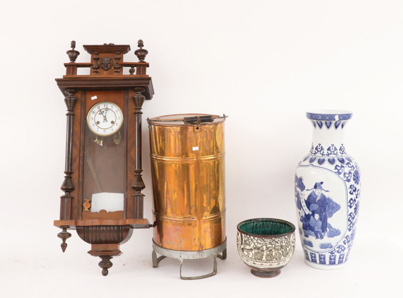 Golvvas, Kina, 1900-tal. Pendelur. Brandsprutshink i koppar, m.m.