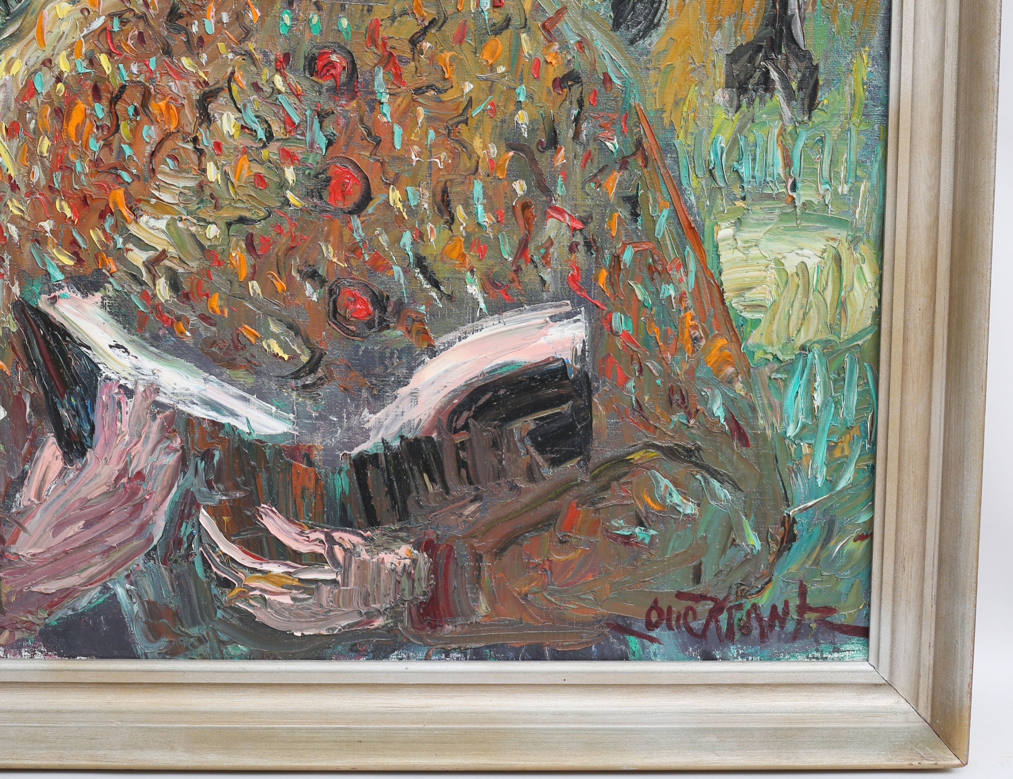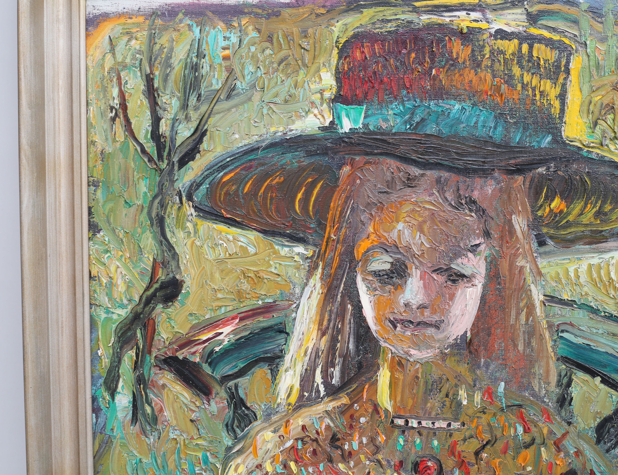 oljemålning på duk, kvinna i hatt med bok, atergo anteckningar, signerad, 81x66, rammått 91x75