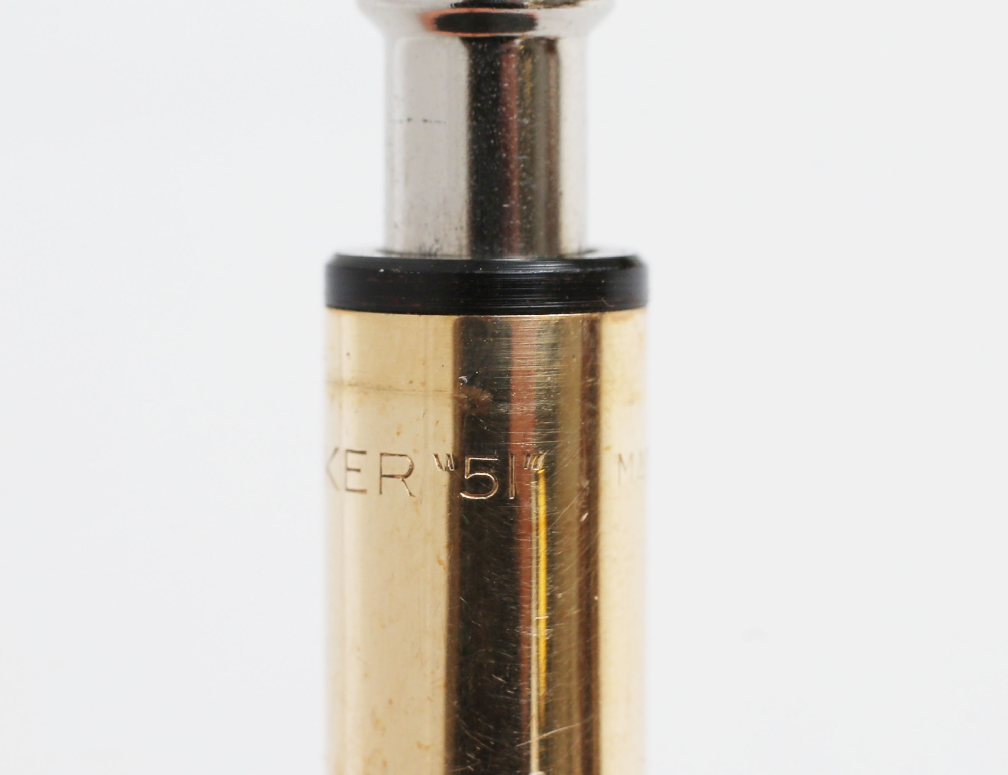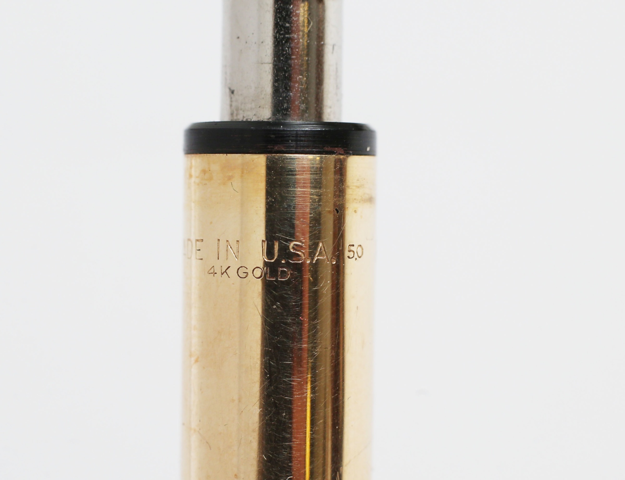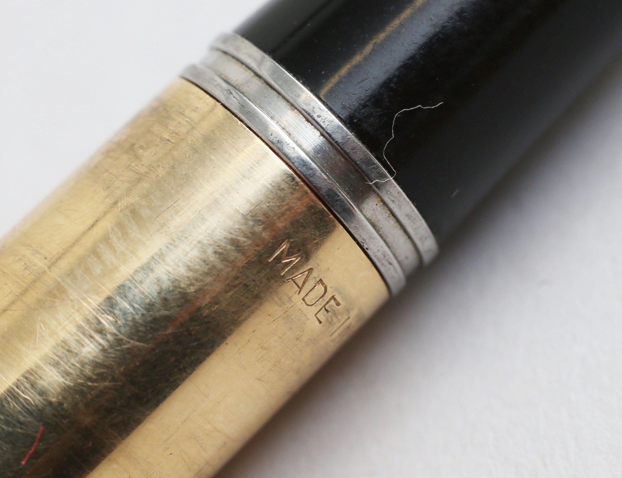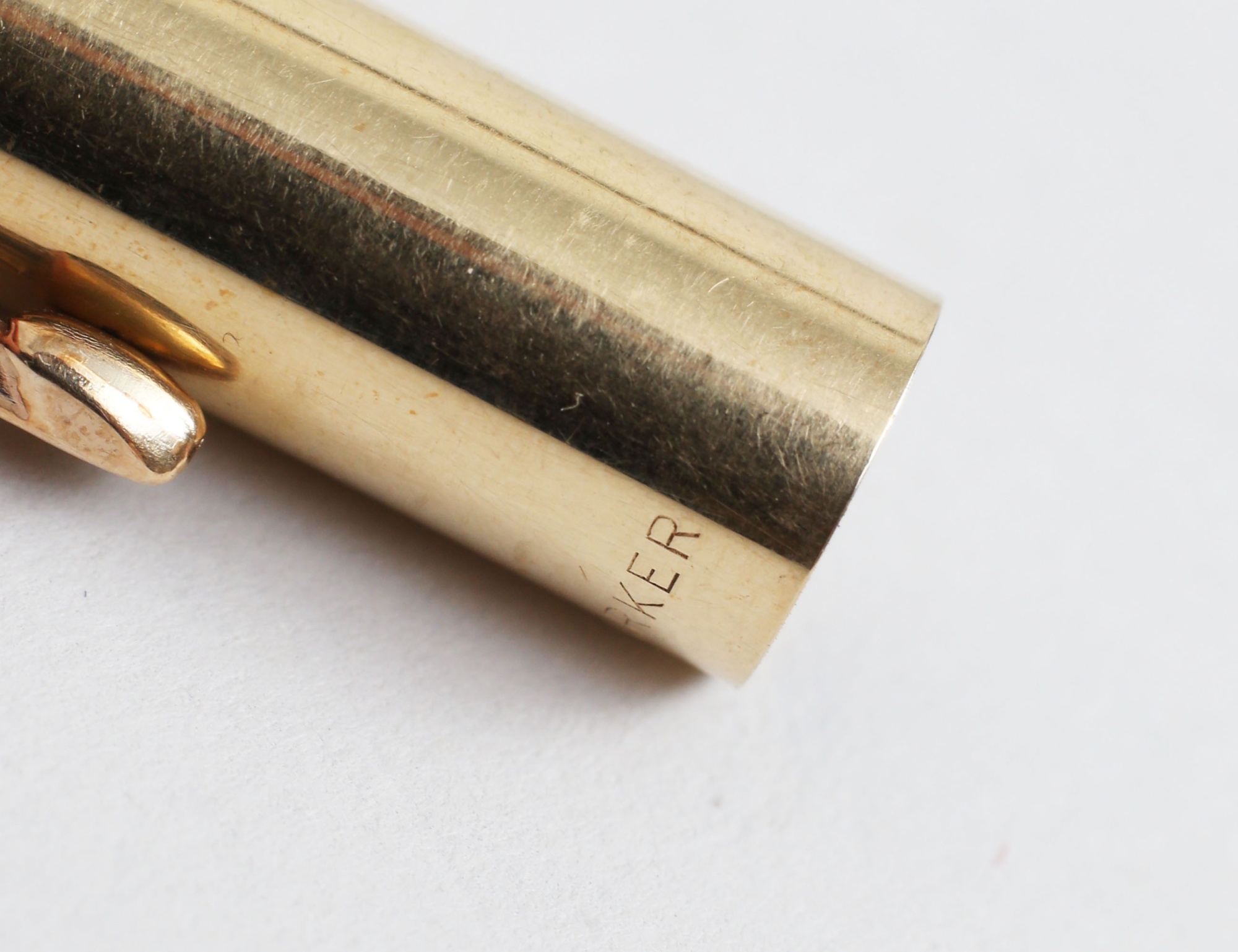 reservoarpenna samt stiftpenna, toppen med fasettslipade grå stenar, stämplade made in USA 50 Parker 14k gold (reservoar med enstaka bucklor, smärre bruksslitage) (2)