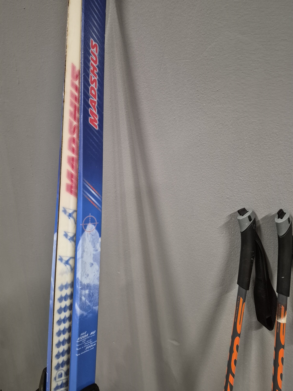 Bilder Längdskidor 200 cm, stavar 140 cm, pjäxor Alpina troligen 41