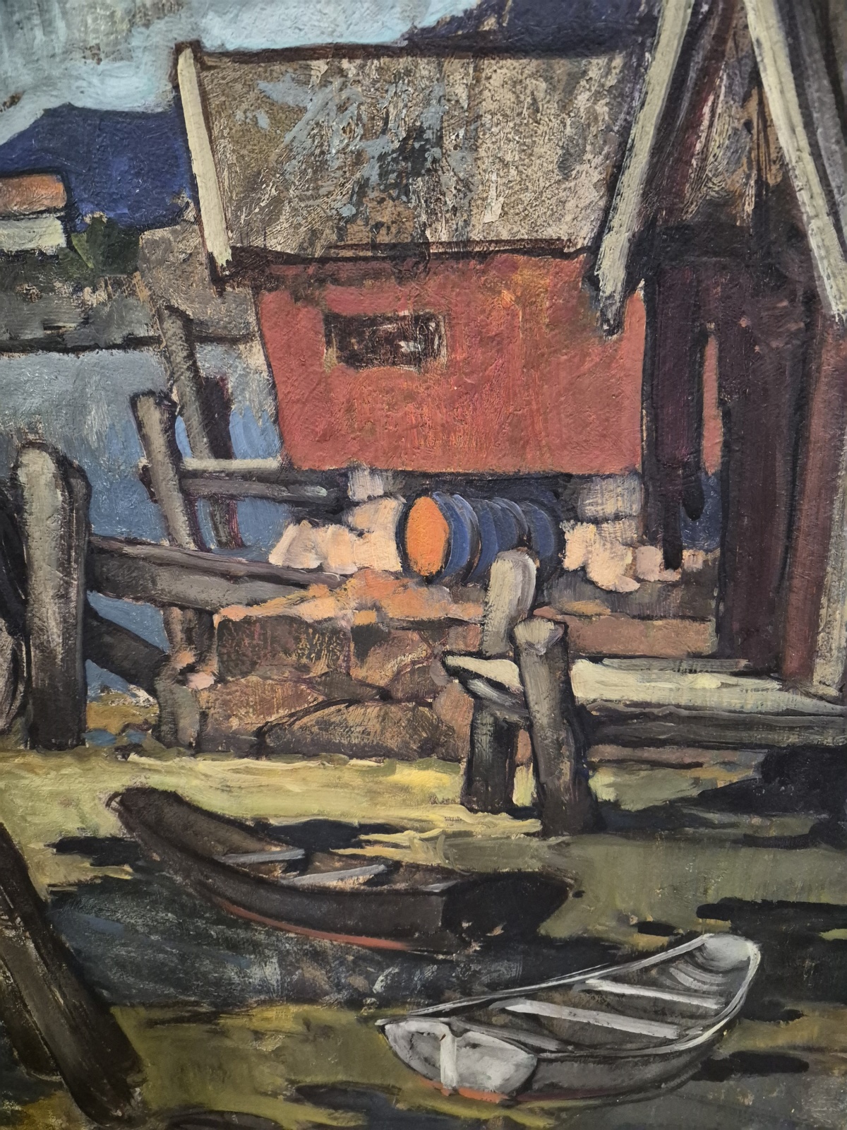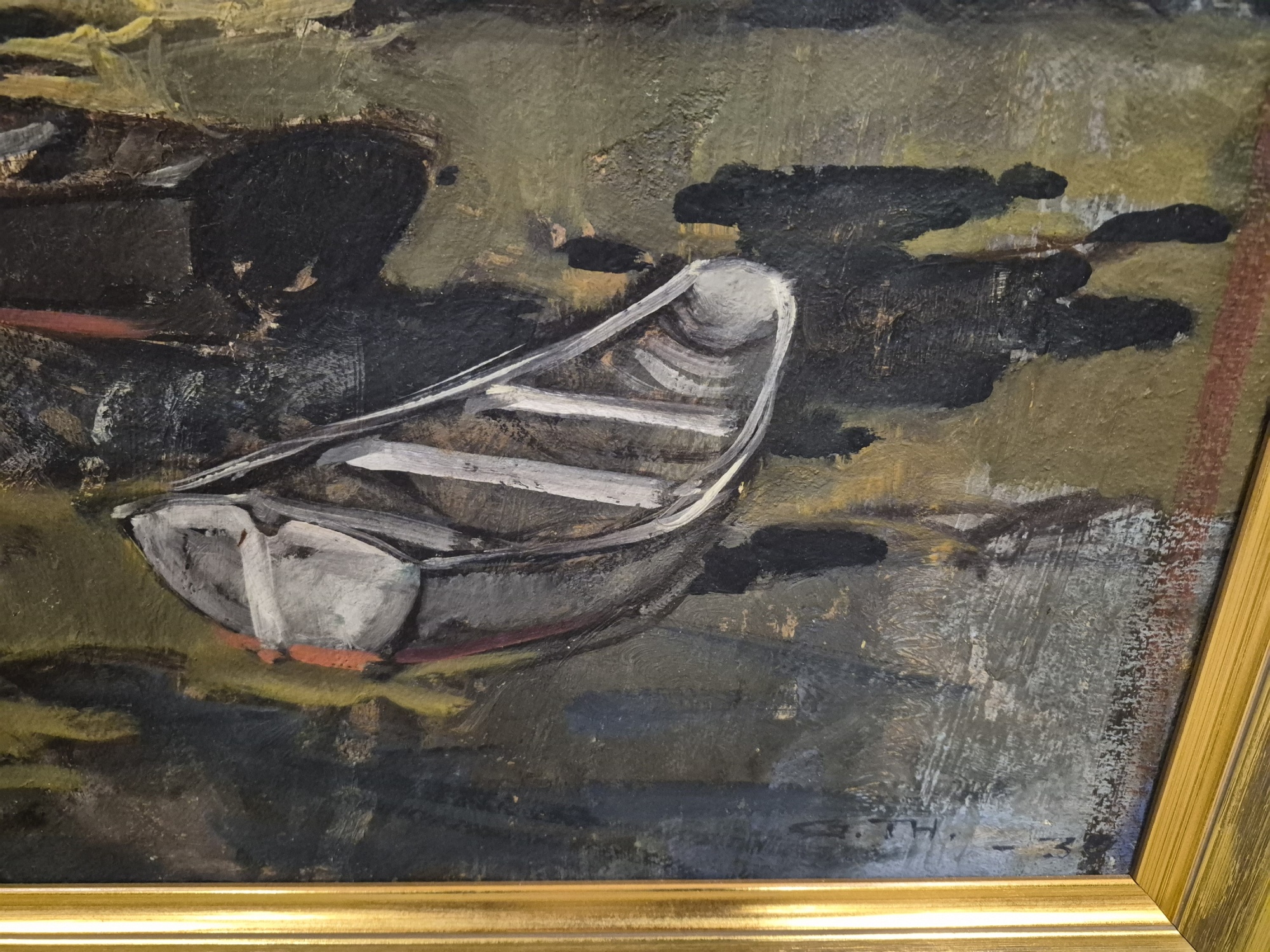 Bilder G.TH, 1936 olja på pannå, "Fiskeläge", mått 60 x 70 cm