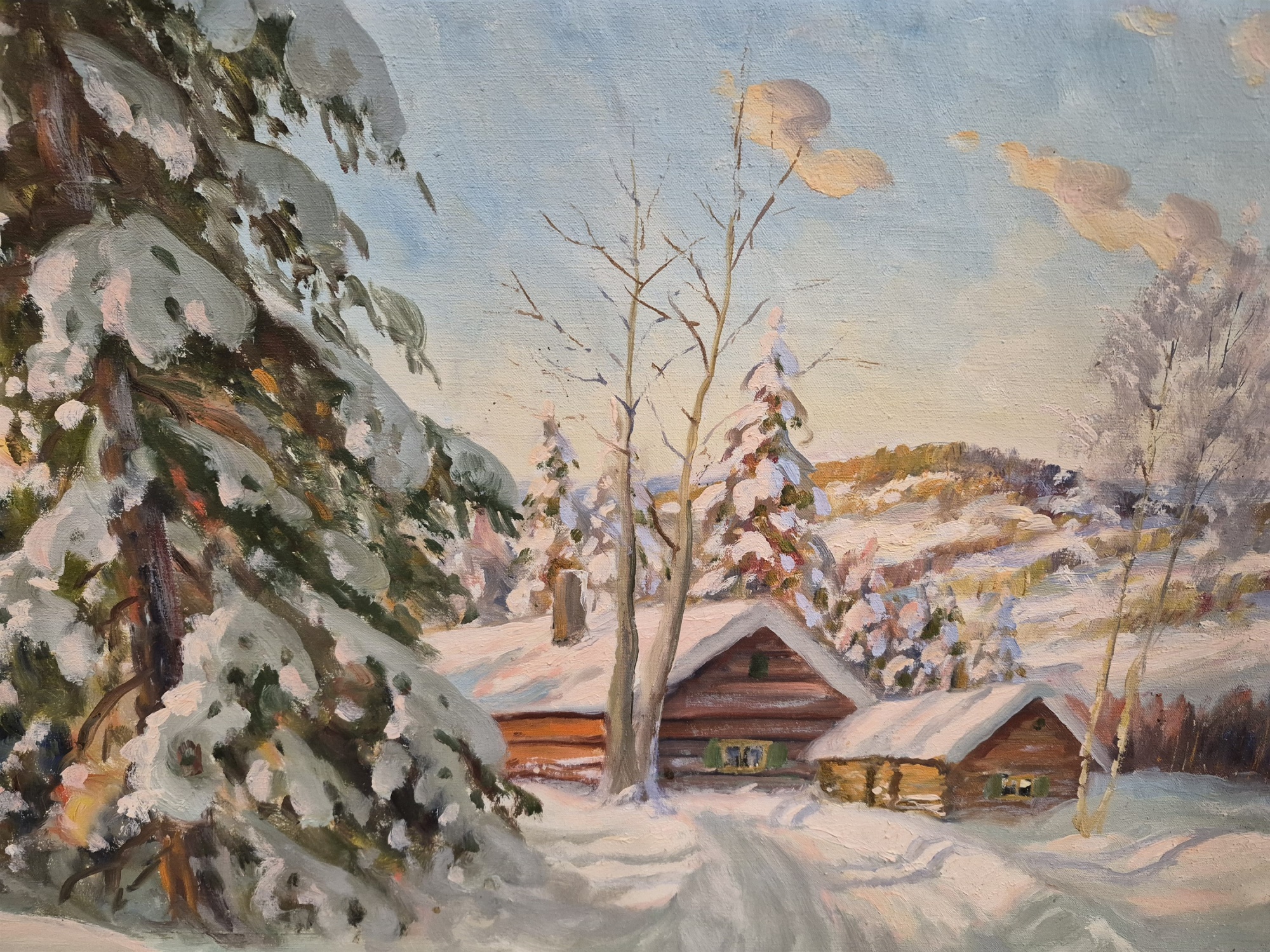 Bilder Signerad olja på duk, "Vinterlandskap" mått 78 x 68 cm