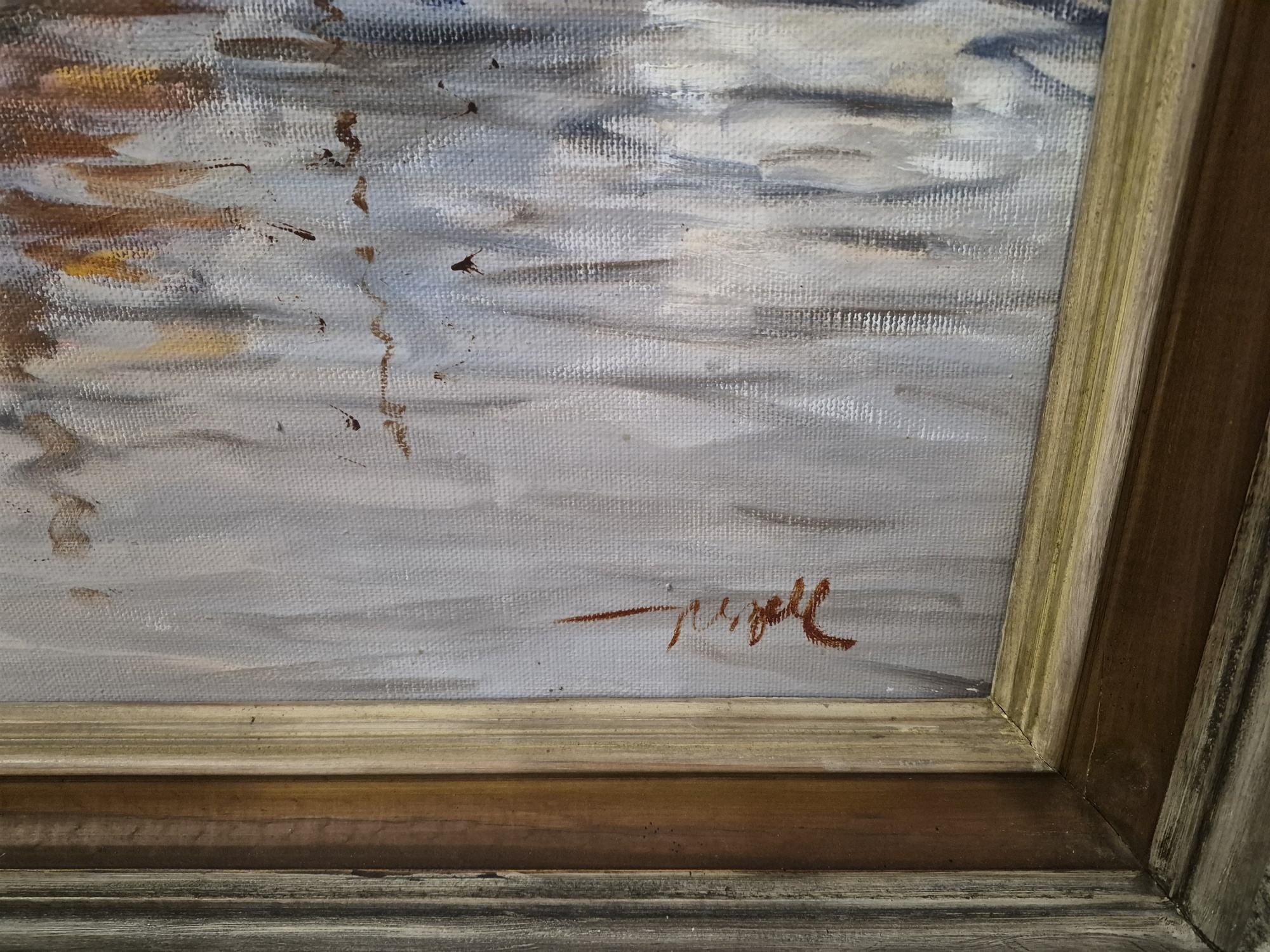 Bilder Kjell Leander-Engström olja på duk, "Fiskeläge", mått 77 x 113 cm
