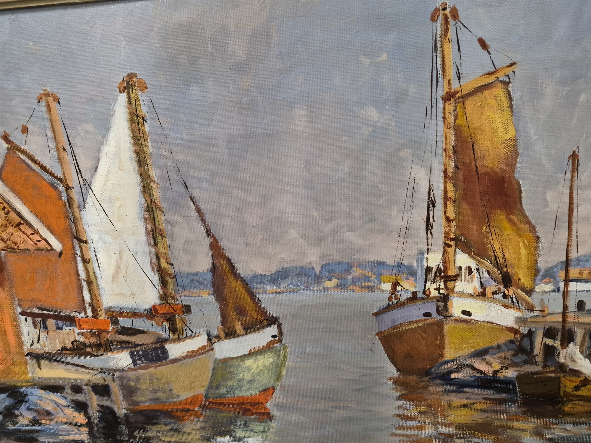 Kjell Leander-Engström olja på duk, "Fiskeläge", mått 77 x 113 cm