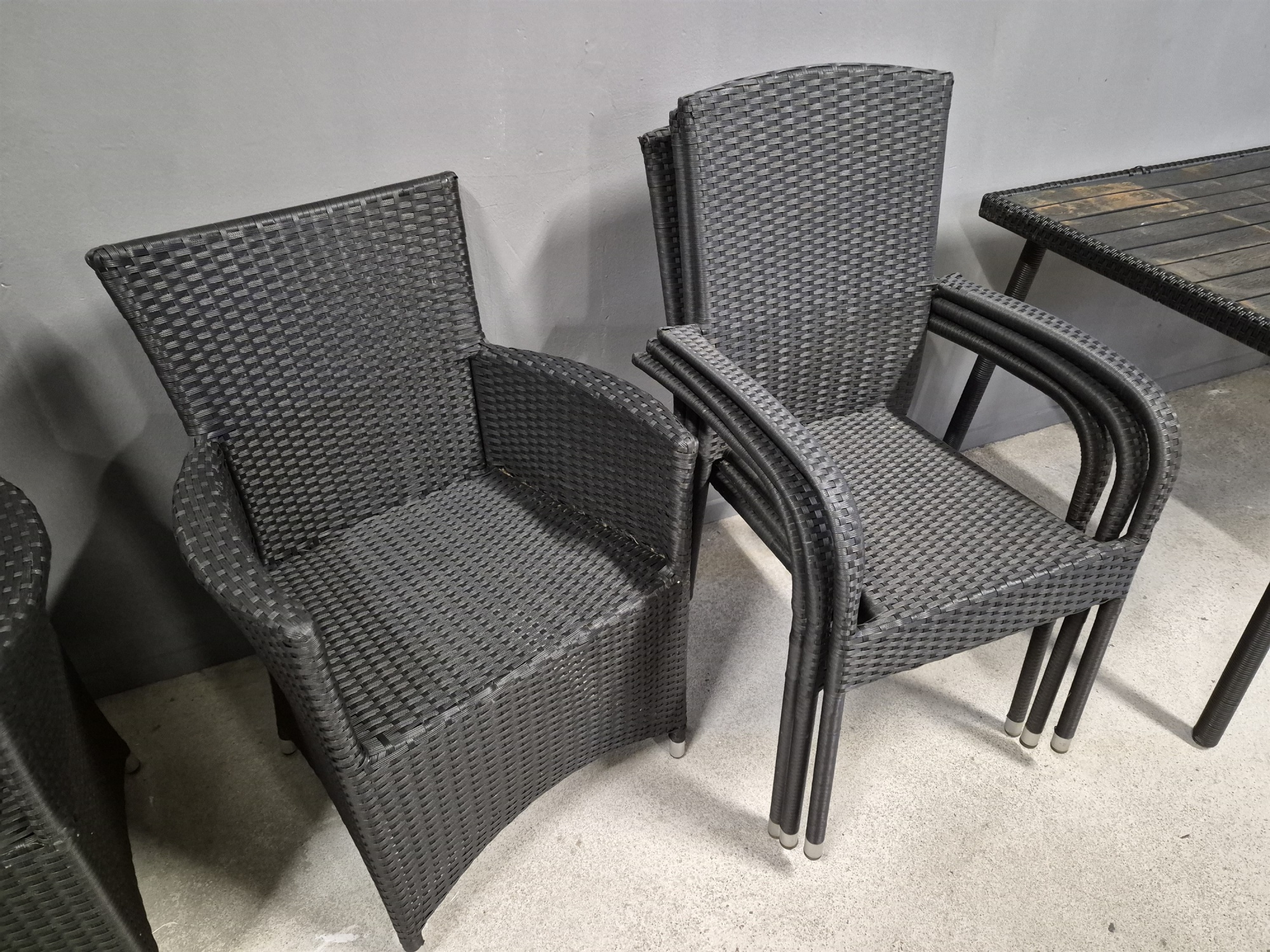 Auktioner Bygg & Trädgård Trädgårdsgrupp 7 delar, Konstrotting, höjd på bord 80 cm, längd 160 cm, bredd 70 cm
