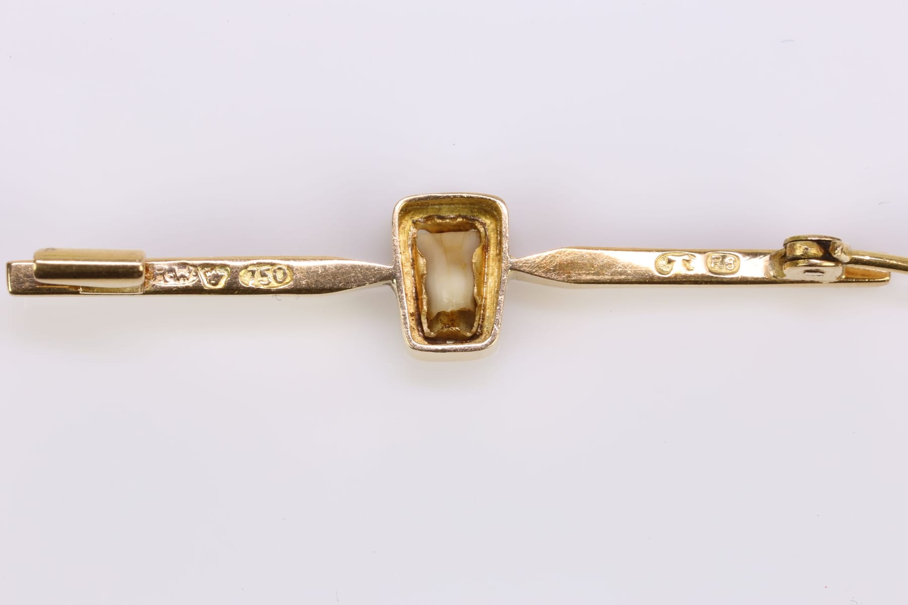 BROSCH med infattad mjölktand, guld, 18 k, ca 3,51 g, Ragnar Sigfrid Vårvik, Åbo, Finland, 1935