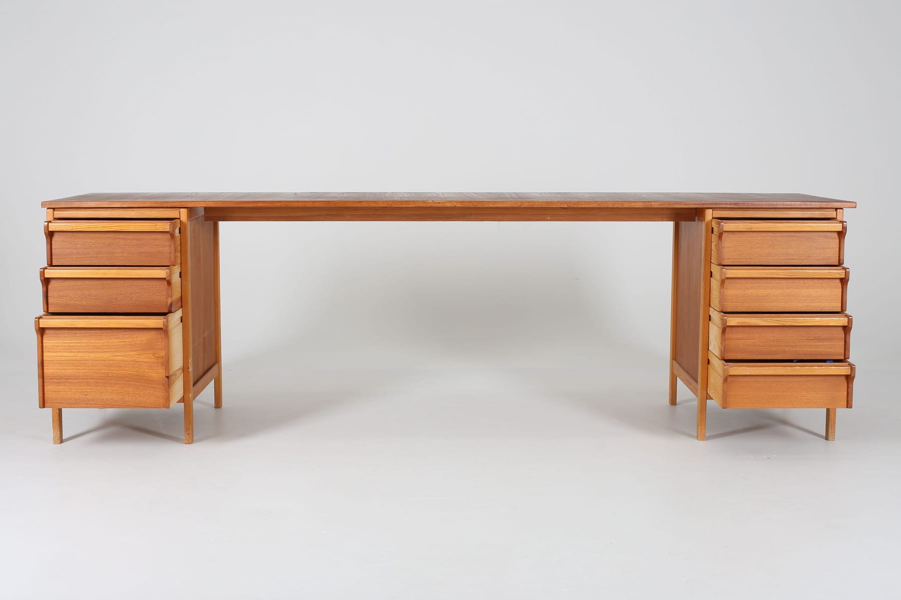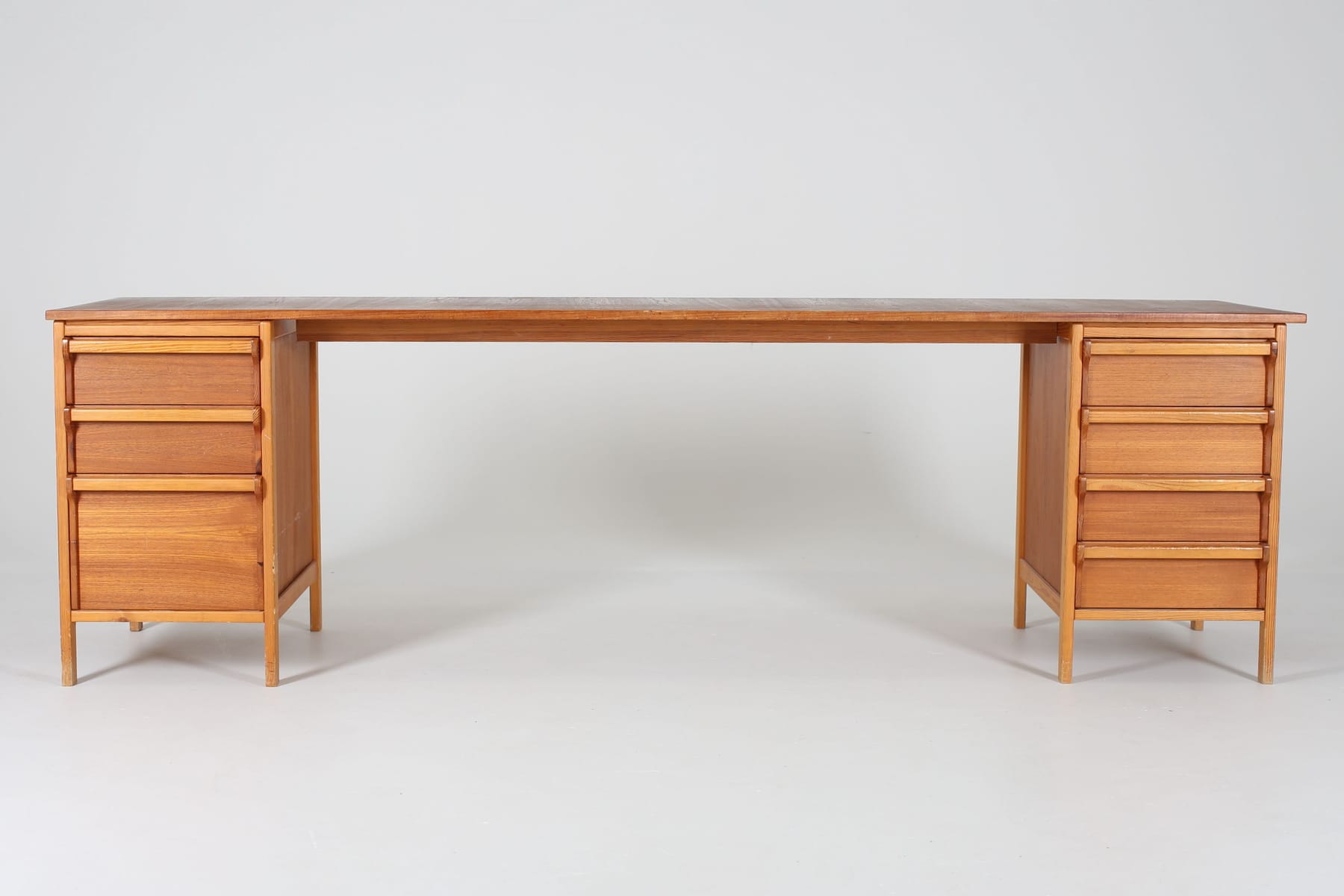 SKRIVBORD med lådhurtsar, teakfanerad furu, 1950/1960-tal