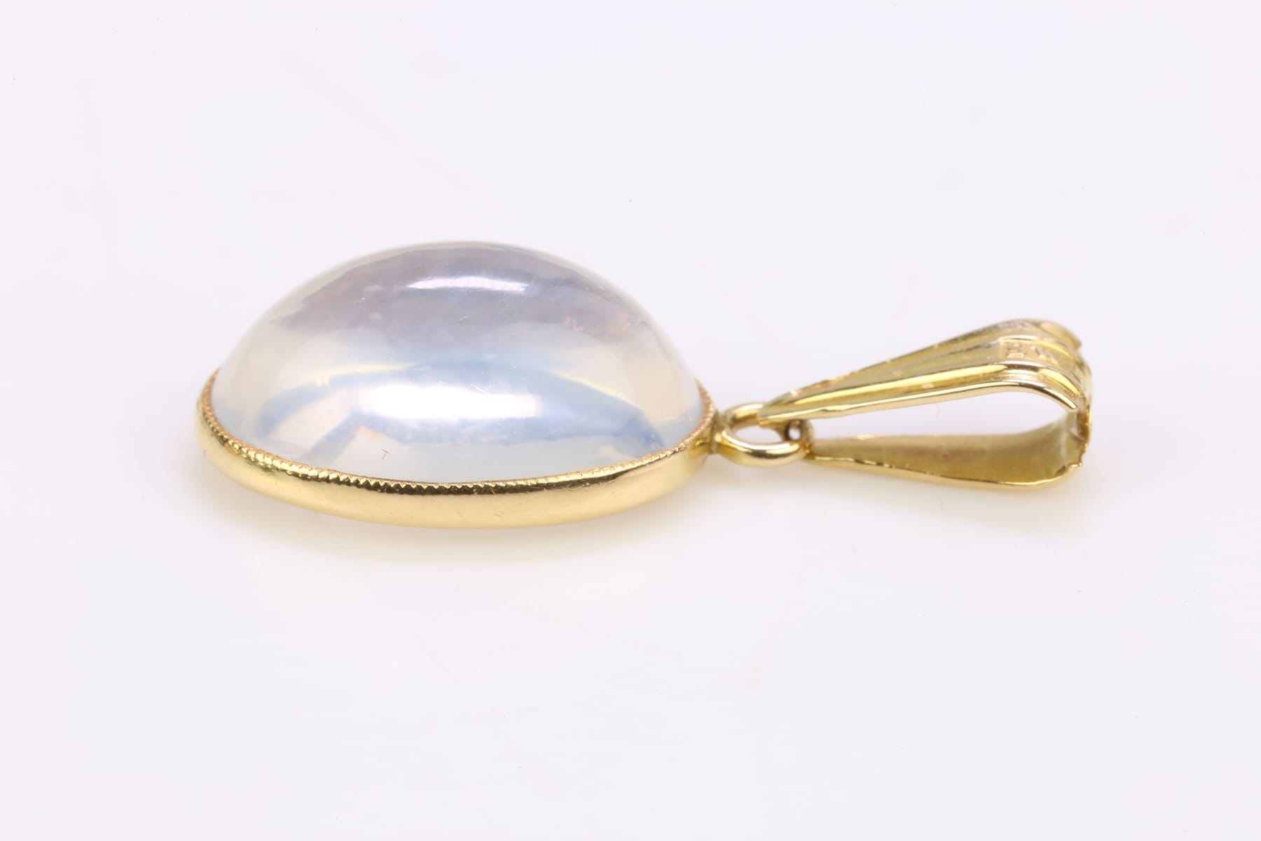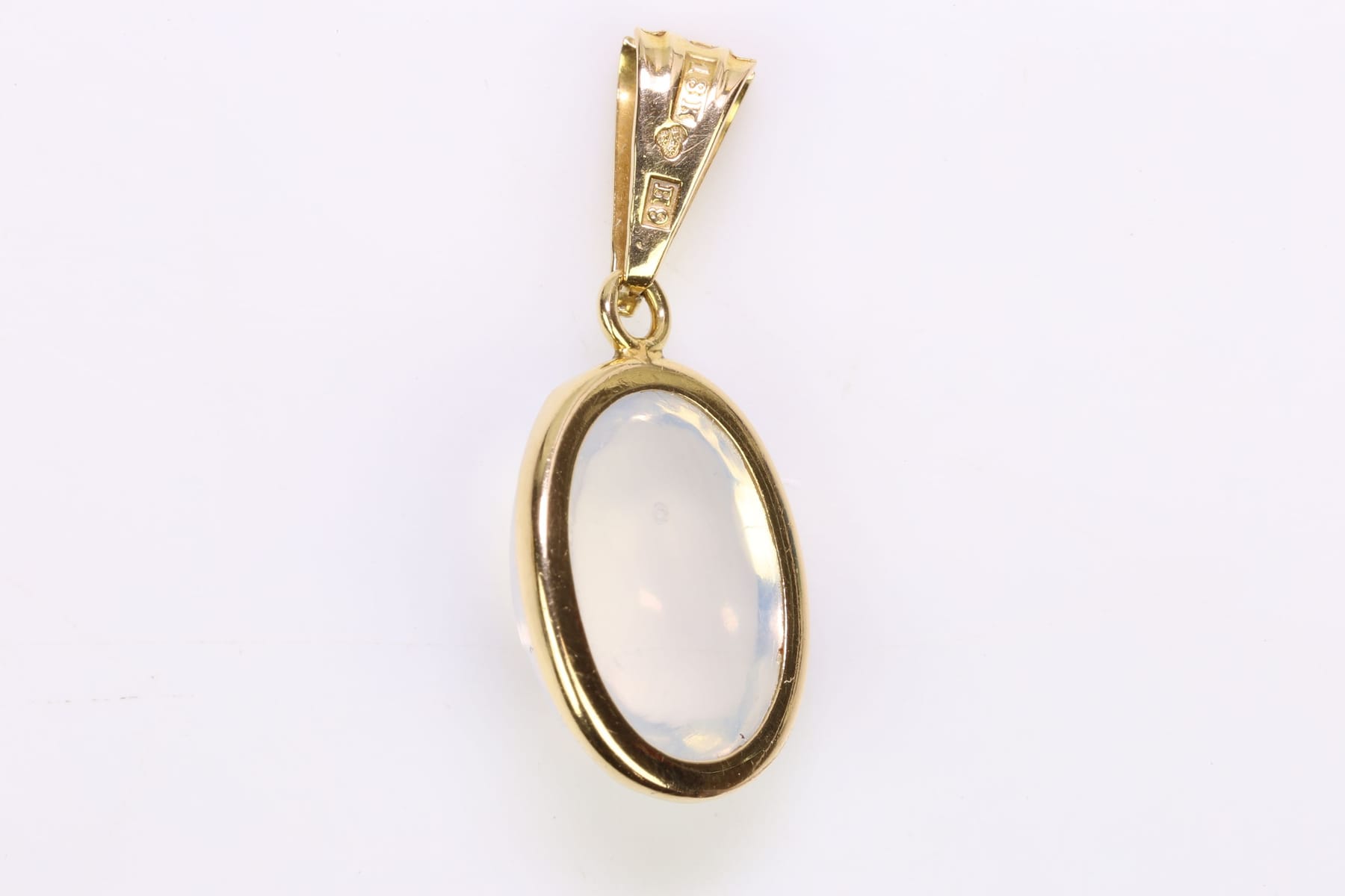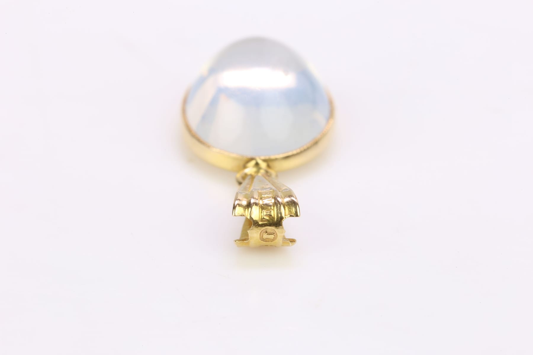HÄNGE med cabochonslipad vit sten, guld, 18 k, ca 1,87 g, Ljungström Guldvarufabrik Ab, Stockholm, 1958