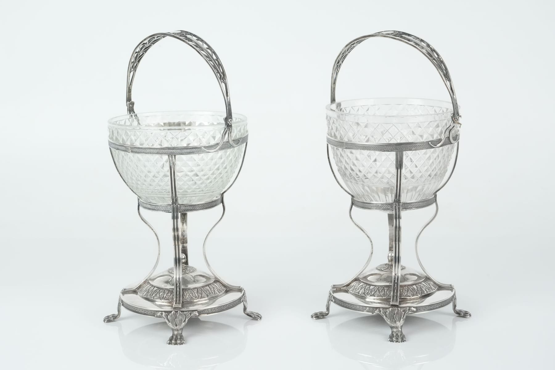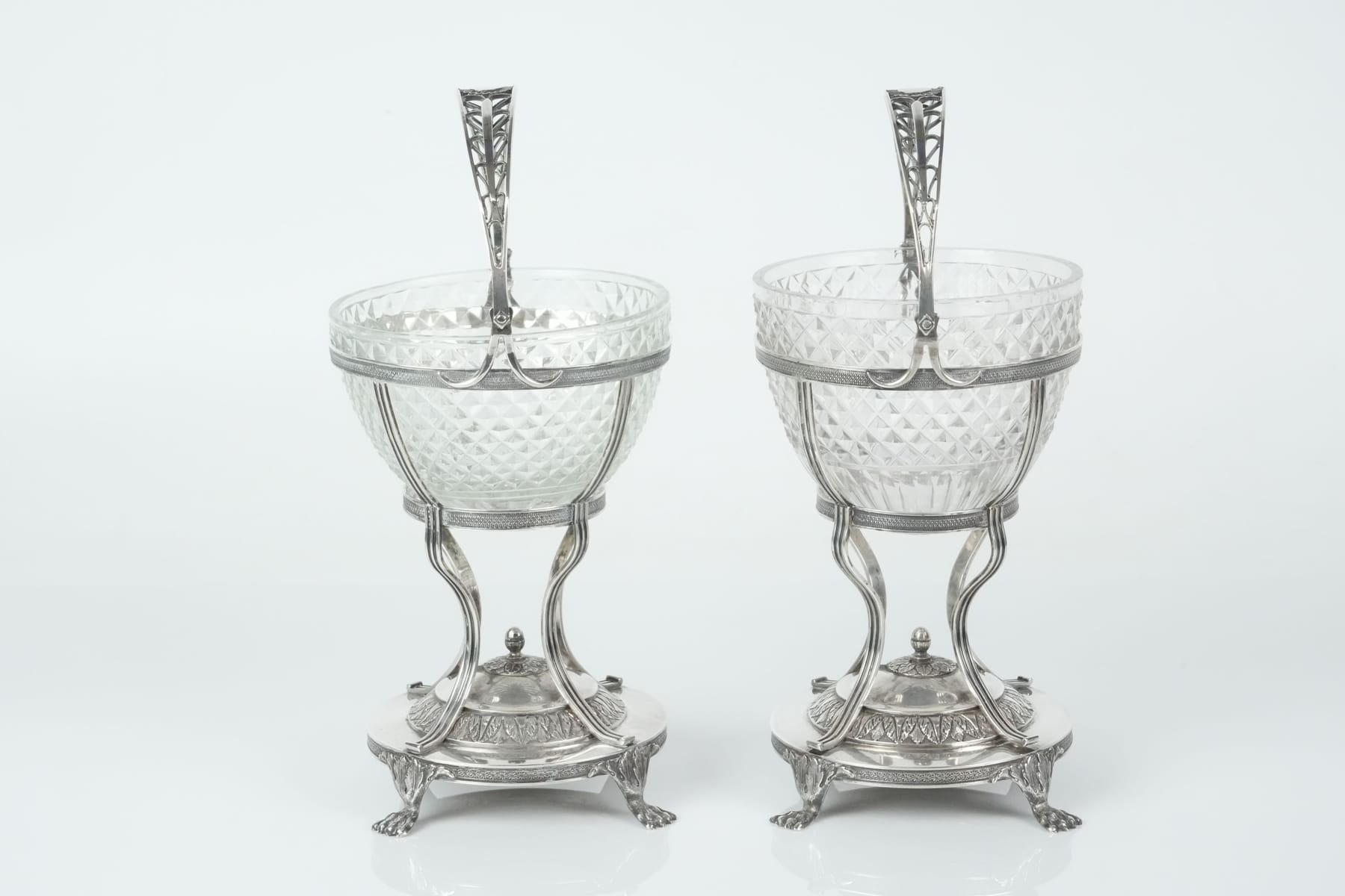 Bilder JOHAN FREDRIK BJÖRNSTEDT, bonbonjärer, ett par, silver med glasinsats, empir, Stockholm, 1825, ca 769,25 g