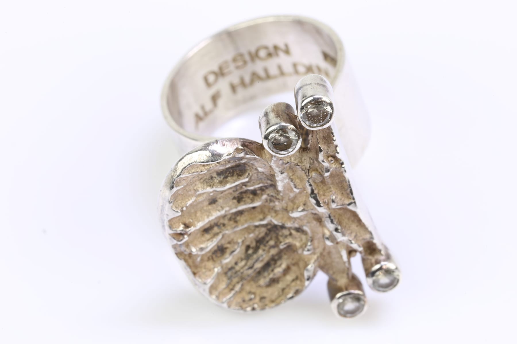 Bilder ALF HALLDIN, ring med vita stenar, silver, Alf Halldins Guldsmedsatelje, Örebro, 1973