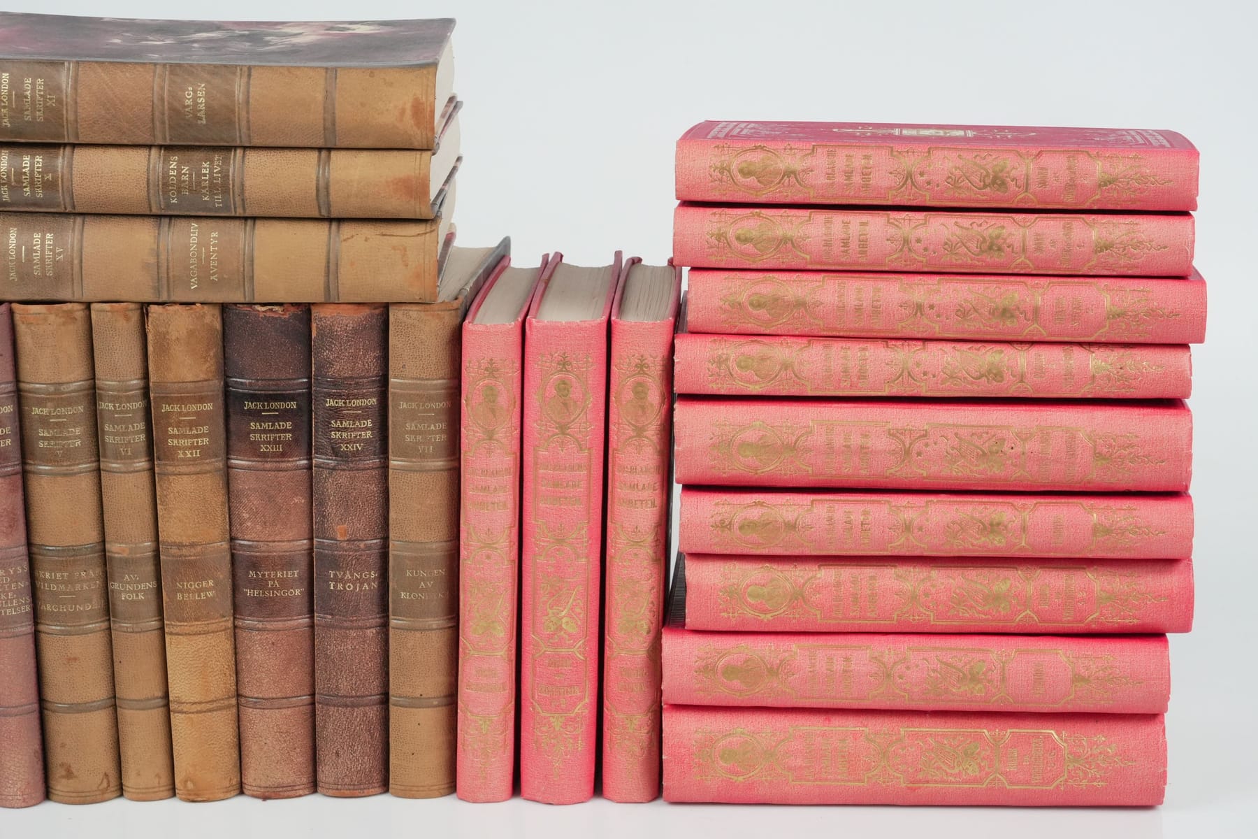 Bilder PARTI med böcker, bl.a. Jack Londons samlade skrifter
