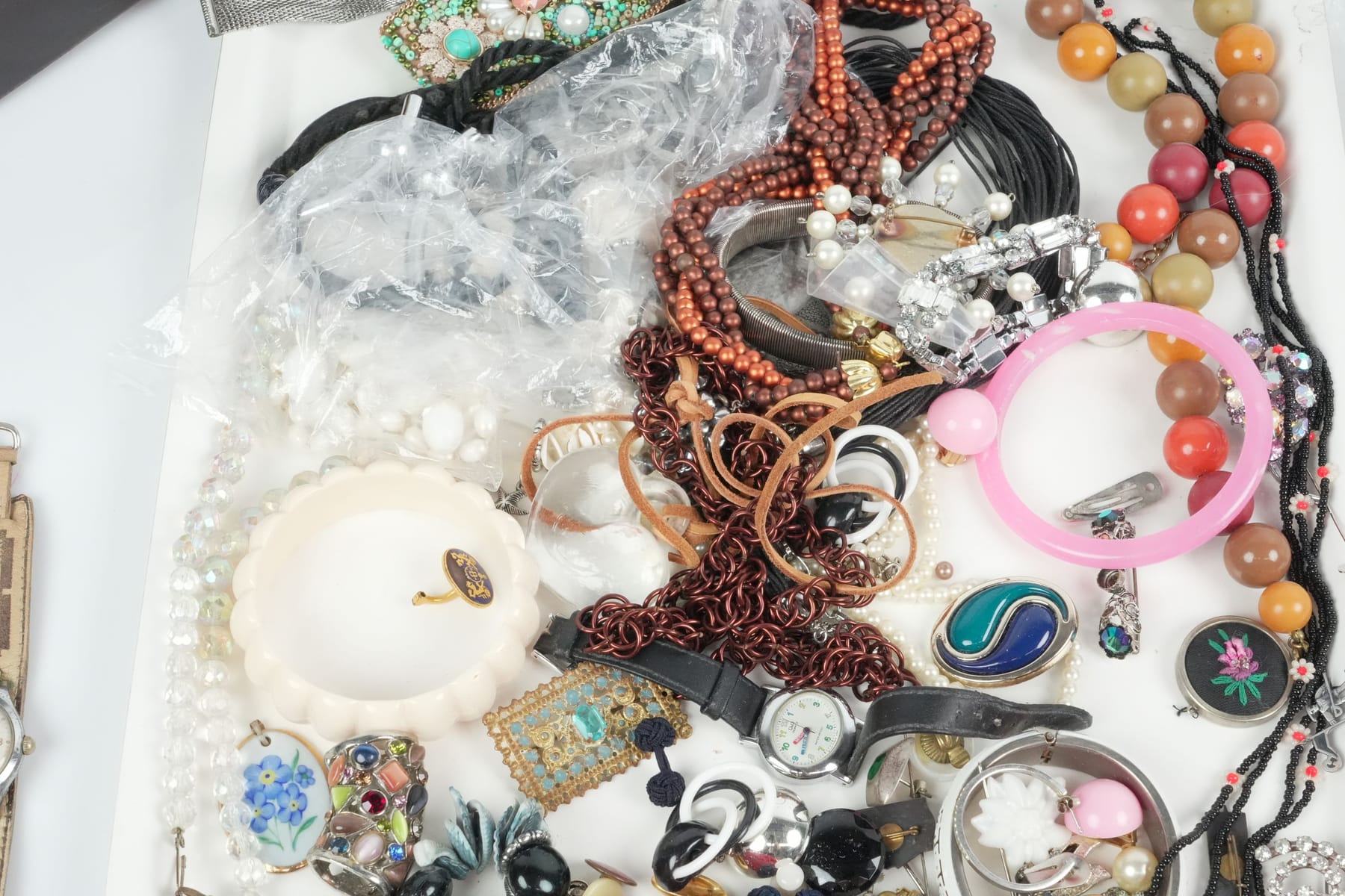 PARTI med skrin, smycken, armbandsur och bijouterier