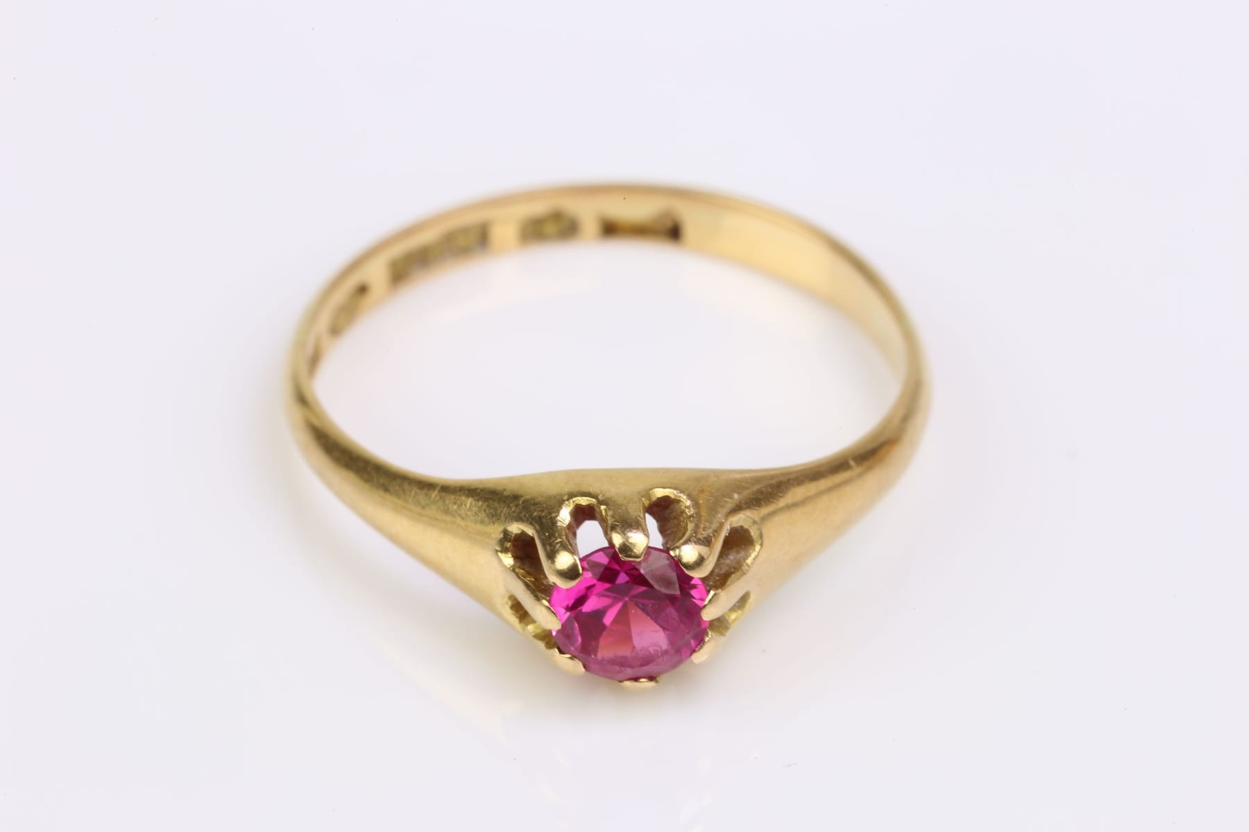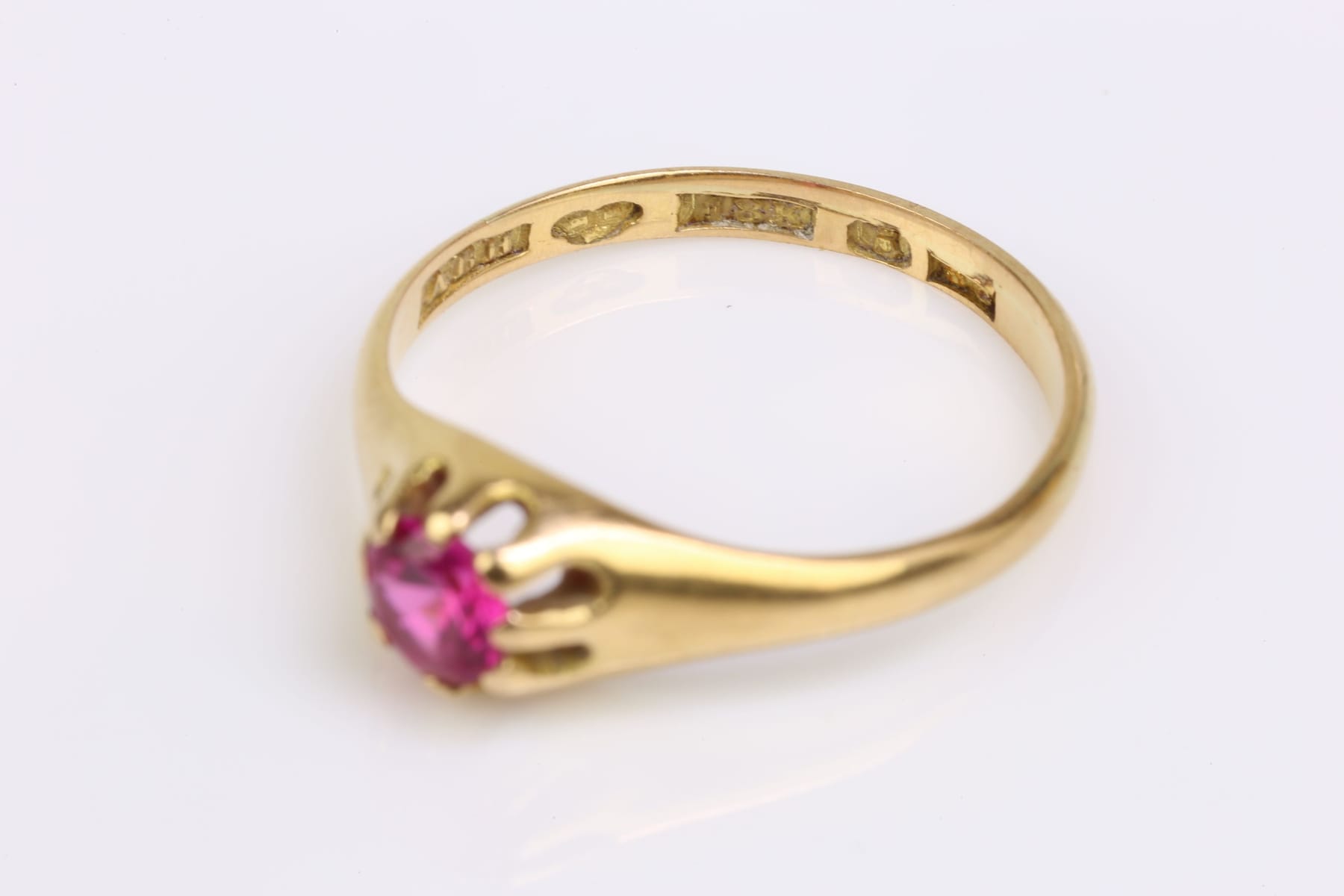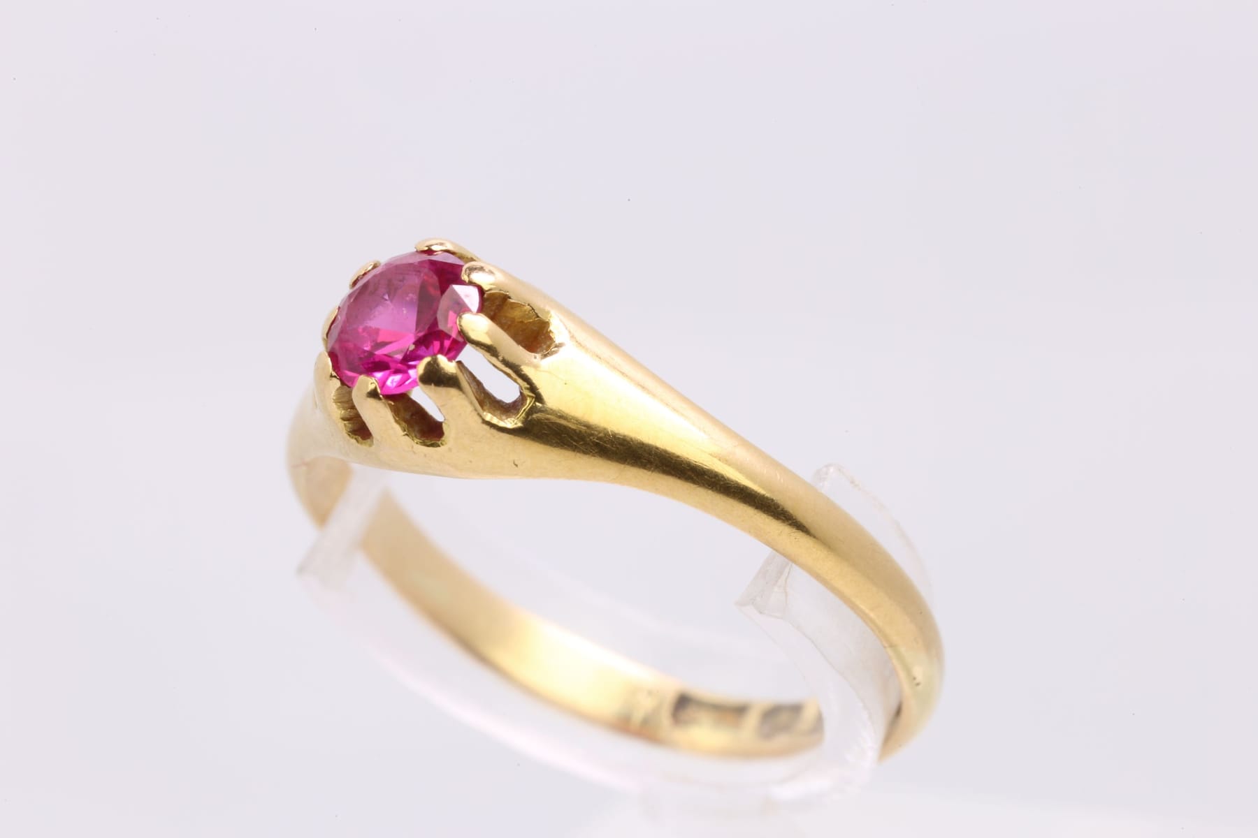 Bilder ENSTENSRING med rosaröd sten, guld, 18 k, ca 2,52 g, Aktiebolaget Bernhard Hertz, Stockholm, 1944