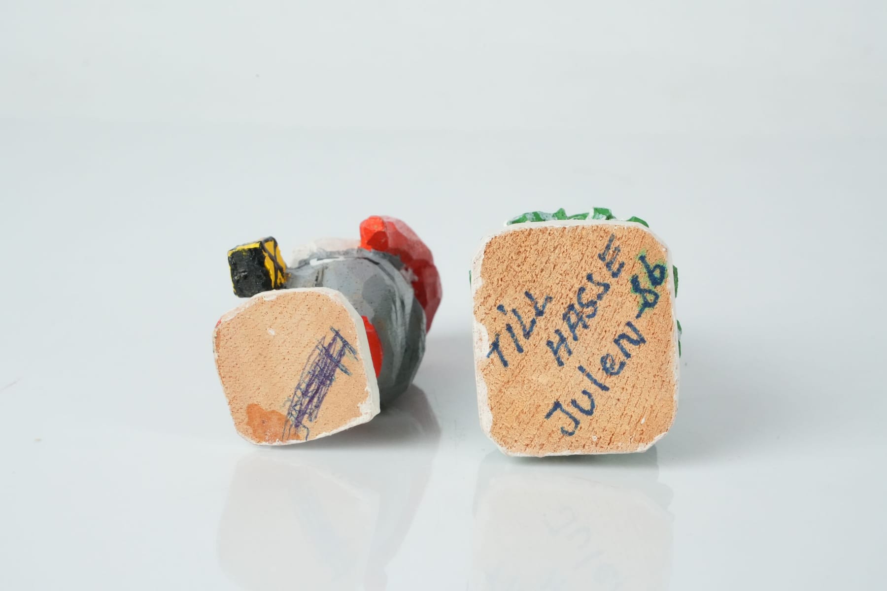 OLLE ERIKSSON, träskulpturer, tomtar, 2 st, skuret och bemålat trä