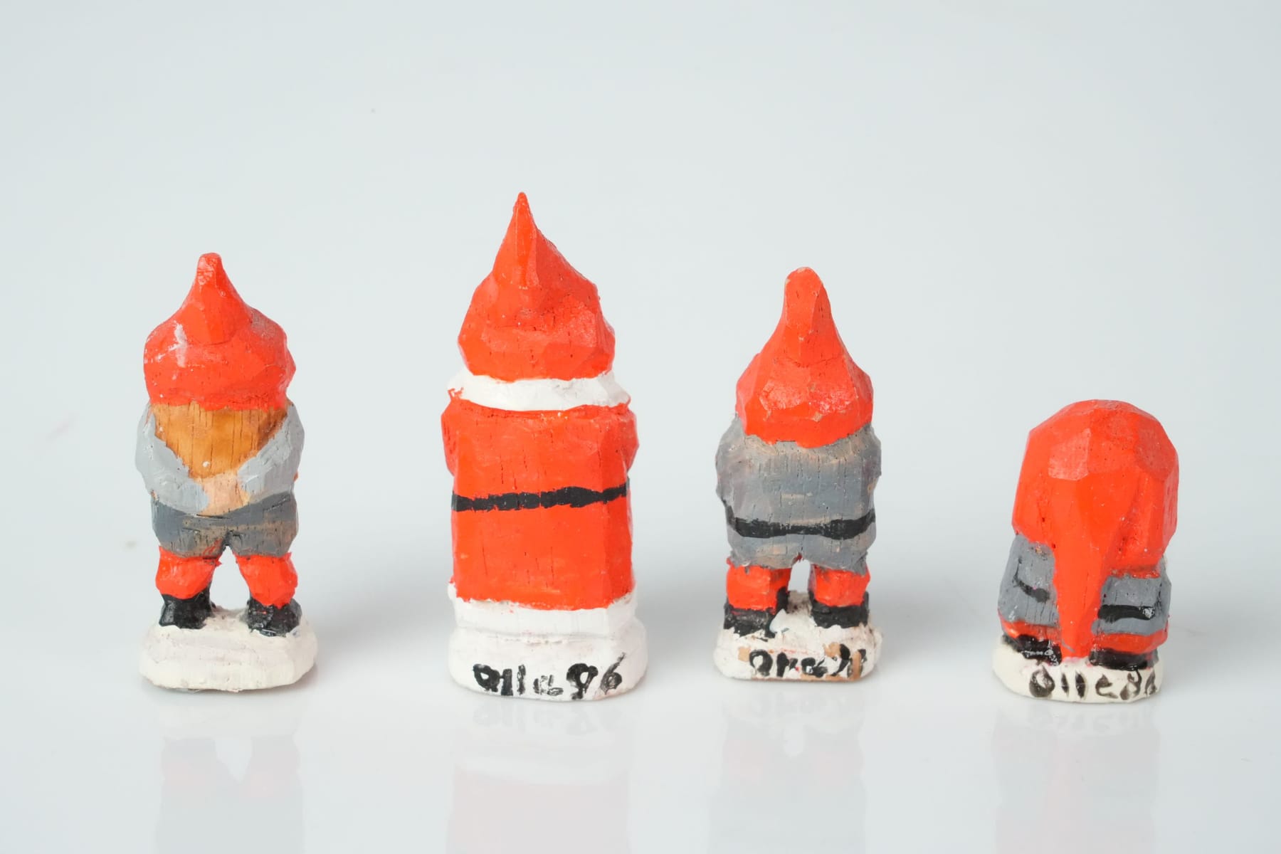 OLLE ERIKSSON, träskulpturer, tomtar, 4 st, skuret och bemålat trä