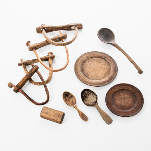 ALLMOGE, 10 delar, 17/1800-tal, tallrikar, skjutask, slevar med mera.