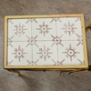Ovan med kakelplattor. Klassicerande dekor. Låda i sarg. Brickmärkt.