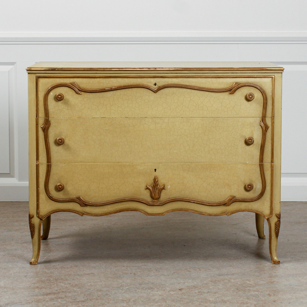 Rak modell. Front med 3 lådor. Klassicerande dekor. Brickmärkt.