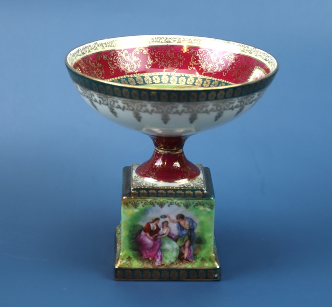 Konfektskål på fot, porslin, Wien-liknande märke , Österrike, 1900-tal.