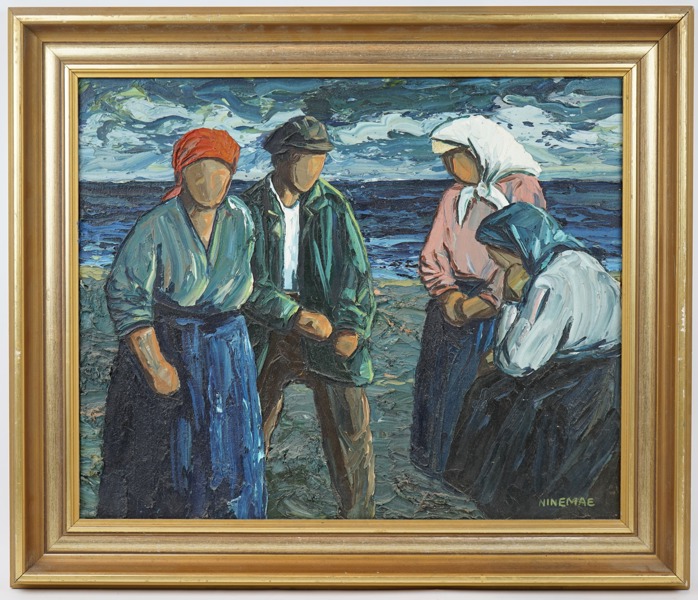 Boris Ninemae, ''Bekymmer hos kustfolket'', olja på duk, signerad.