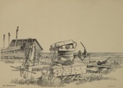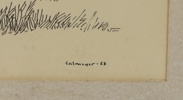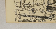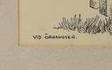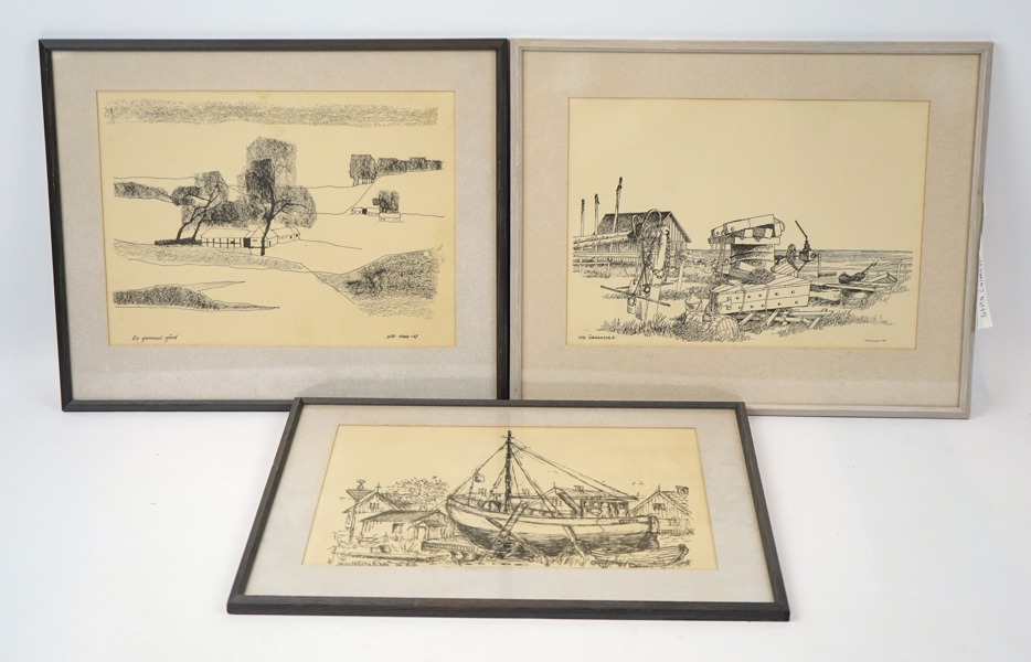 Skånemotiv, 3 st, tusch, signerade, bl.a Gösta Calmeyer.