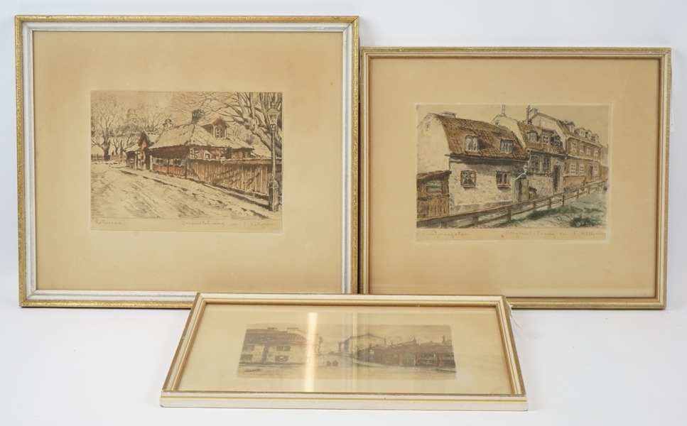 Ernst Hällgren, originaletsningar, 3 st, signerade.