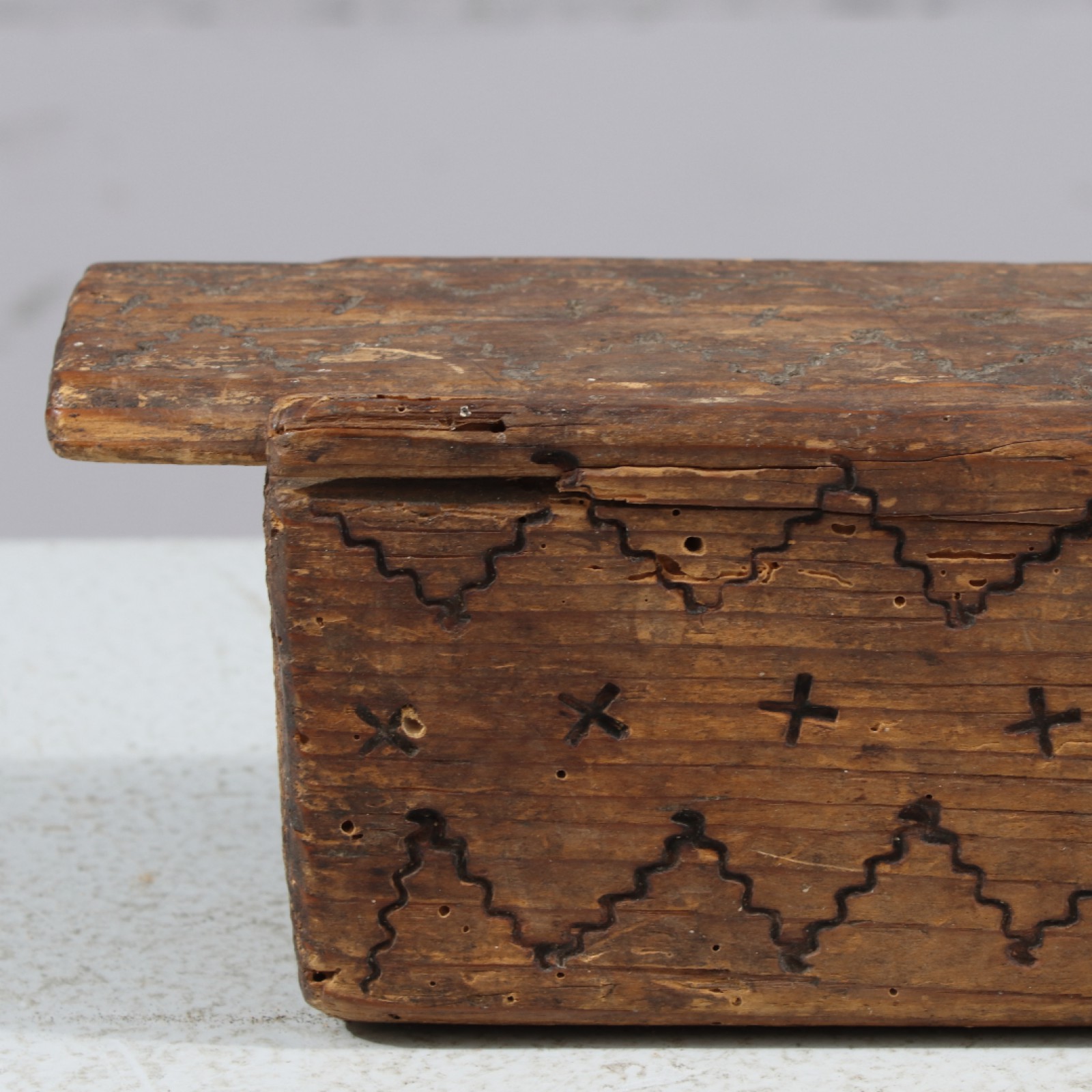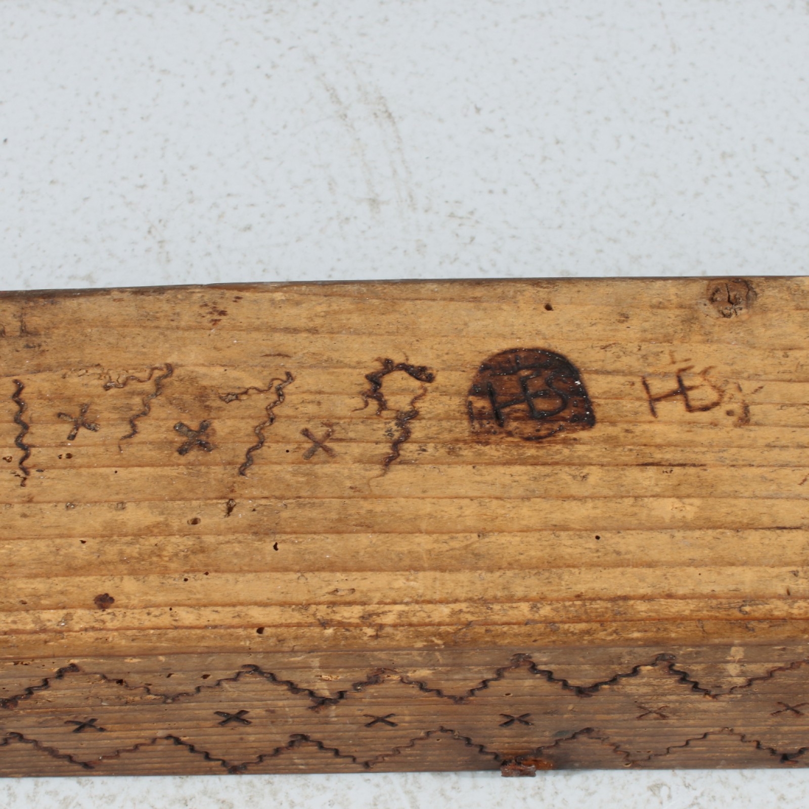 Datering 1779 samt HES, ställvis maskstungen, H.8, L.50, B.9 cm. (vån3)