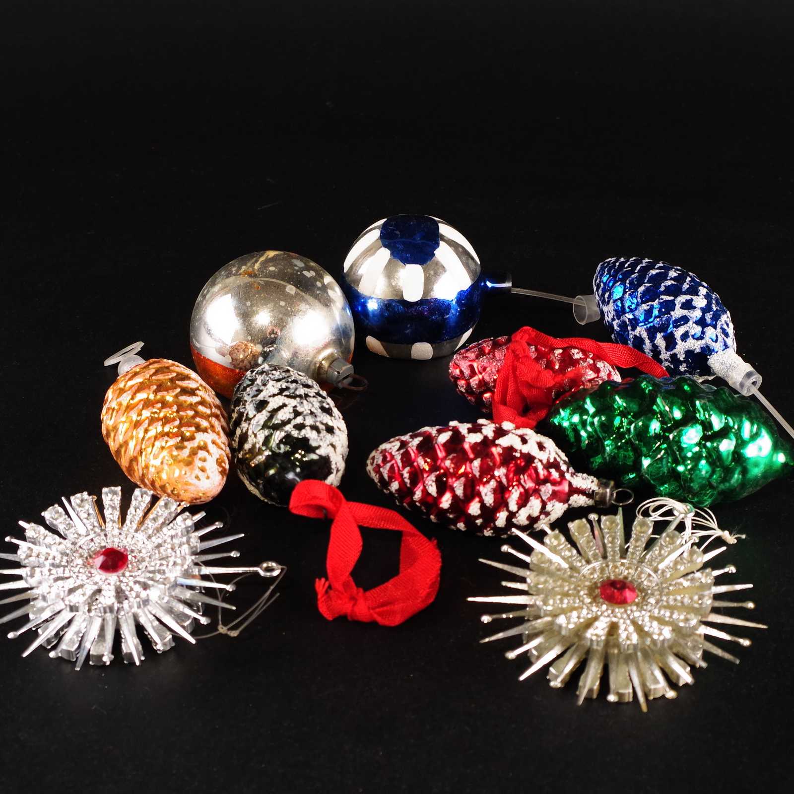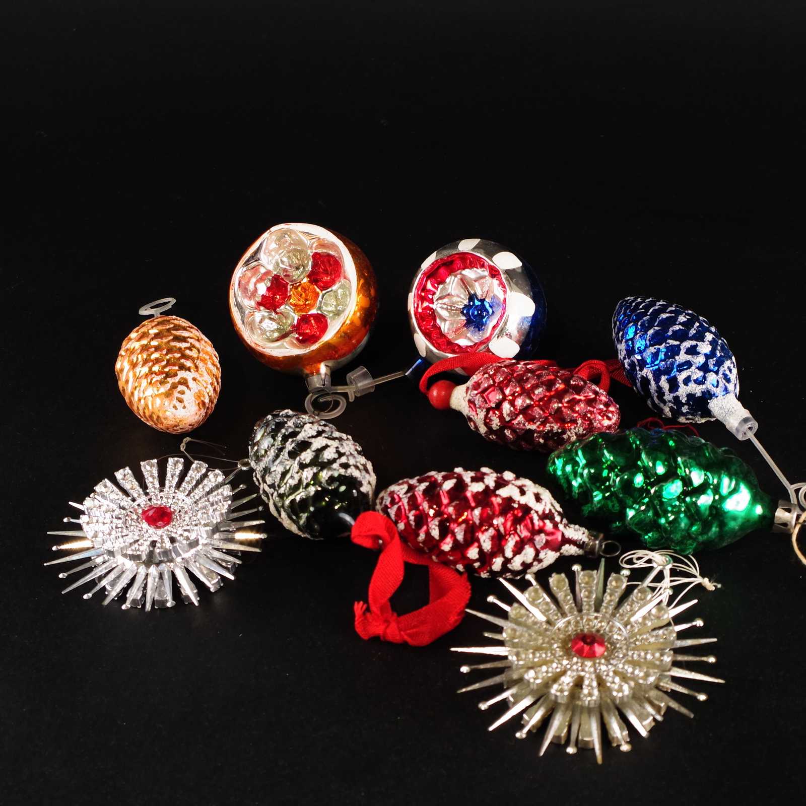 Bilder Parti JULGRANSKULOR äldre, glas. L:7,5cm kottar.