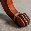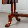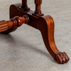 Fanerat i mahogny. 2 st lådor i sarg. Lejontassar.