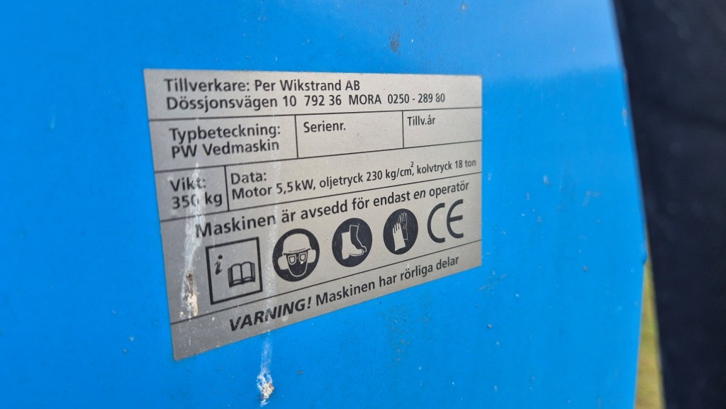 Vedklipp med transportör PW Vedmaskin Per WikstrandModell: PW vedmaskin