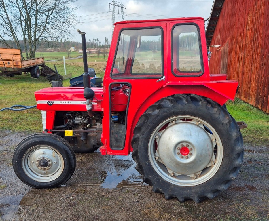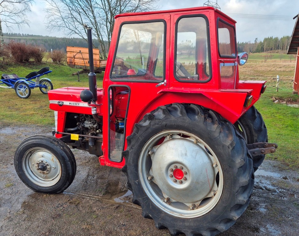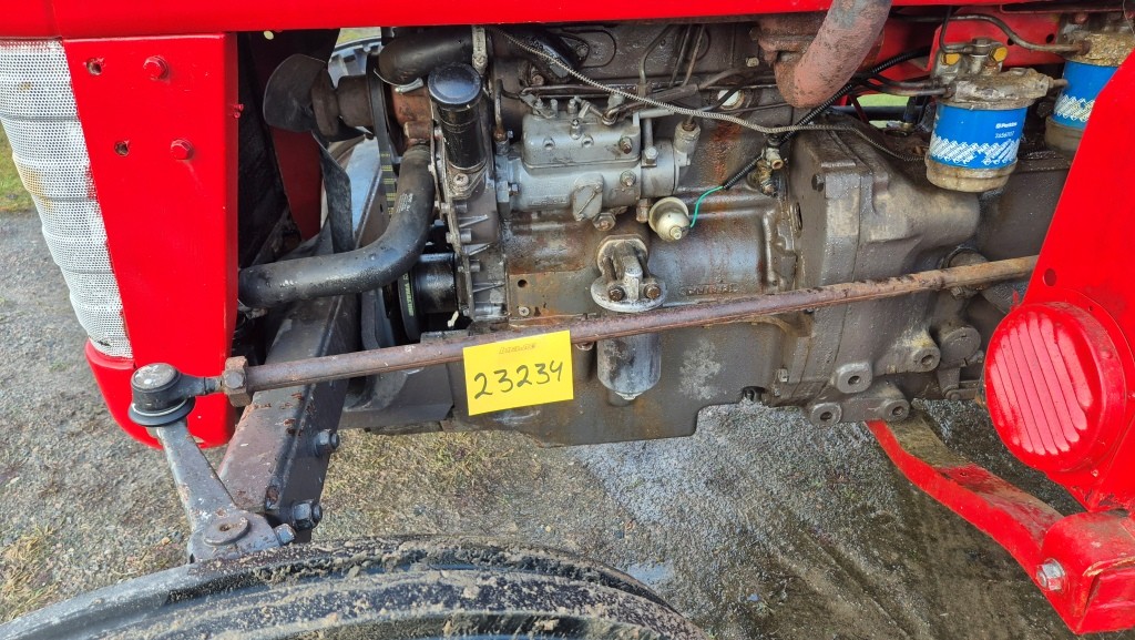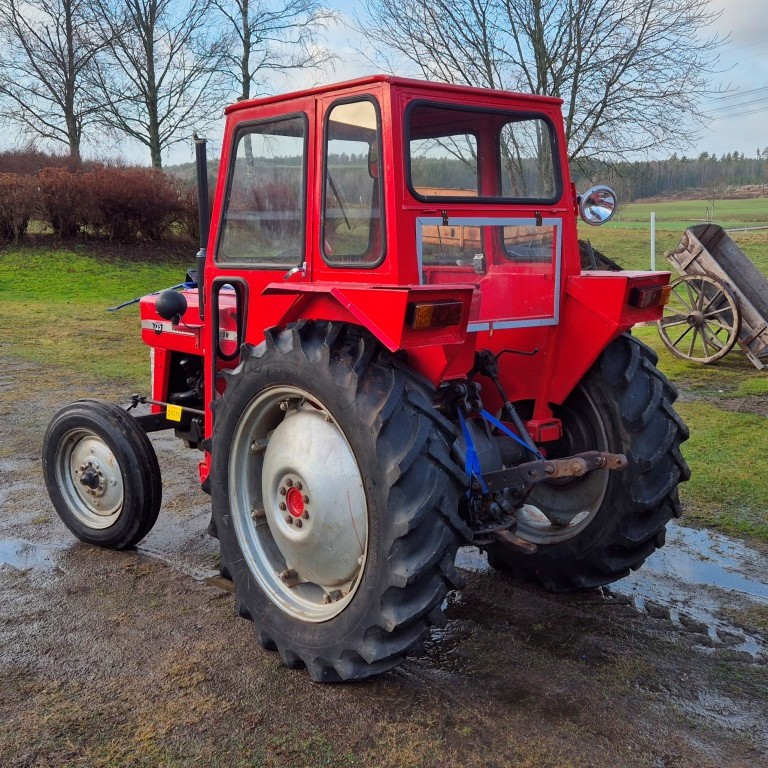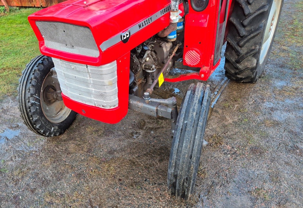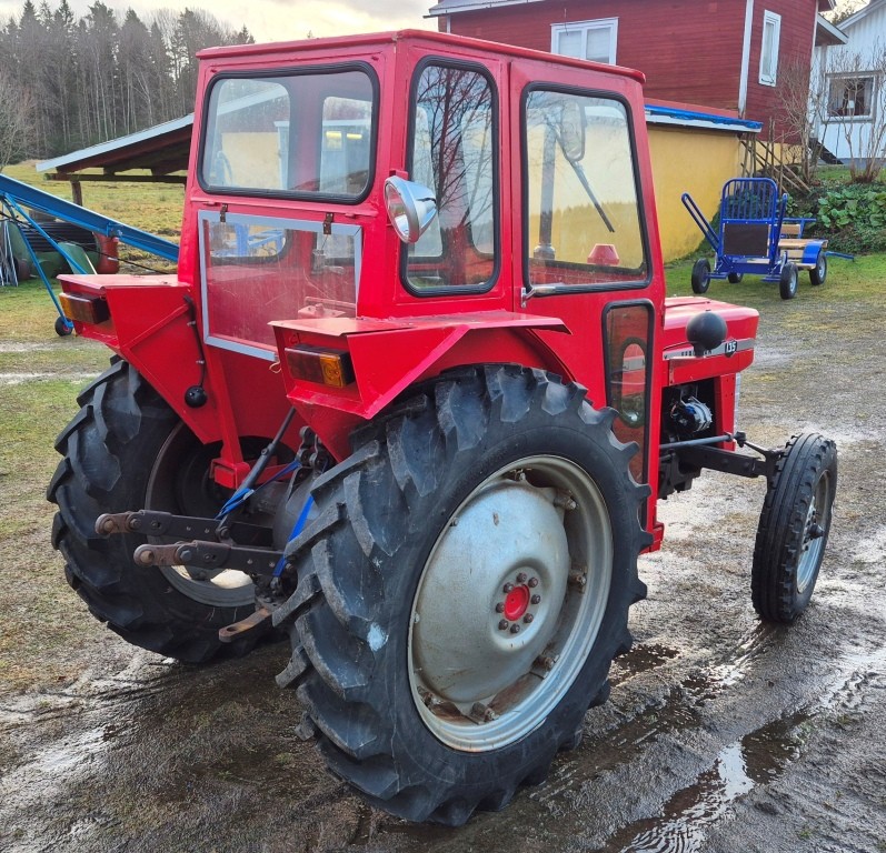 Traktor Massey Ferguson 135Årsmodell: OkändMätarställning: 6491Ej registrerad. Lättstartad traktor i bra skick för sin ålder, några mindre torrsprickor i bakdäcken.