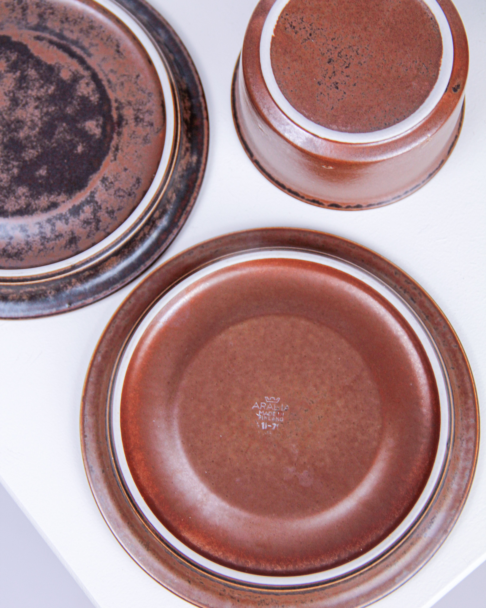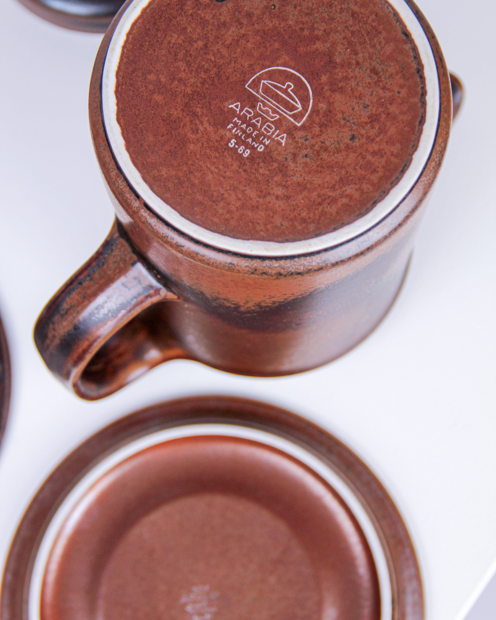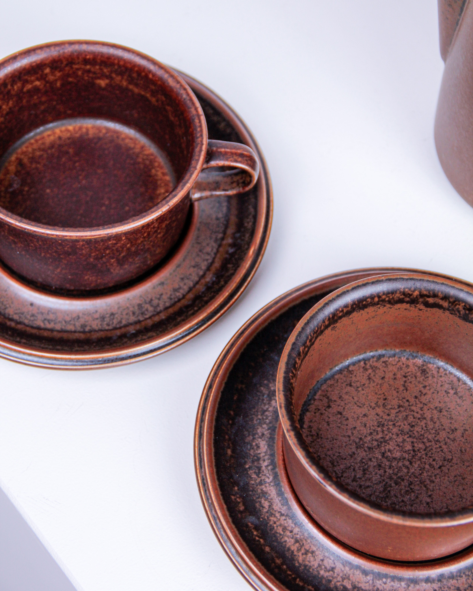 Auktioner Keramik & Porslin Tekanna och koppar med fat, 3 delar, "Ruska", Ulla Procopé, Arabia, Finland (Det dukade bordet)