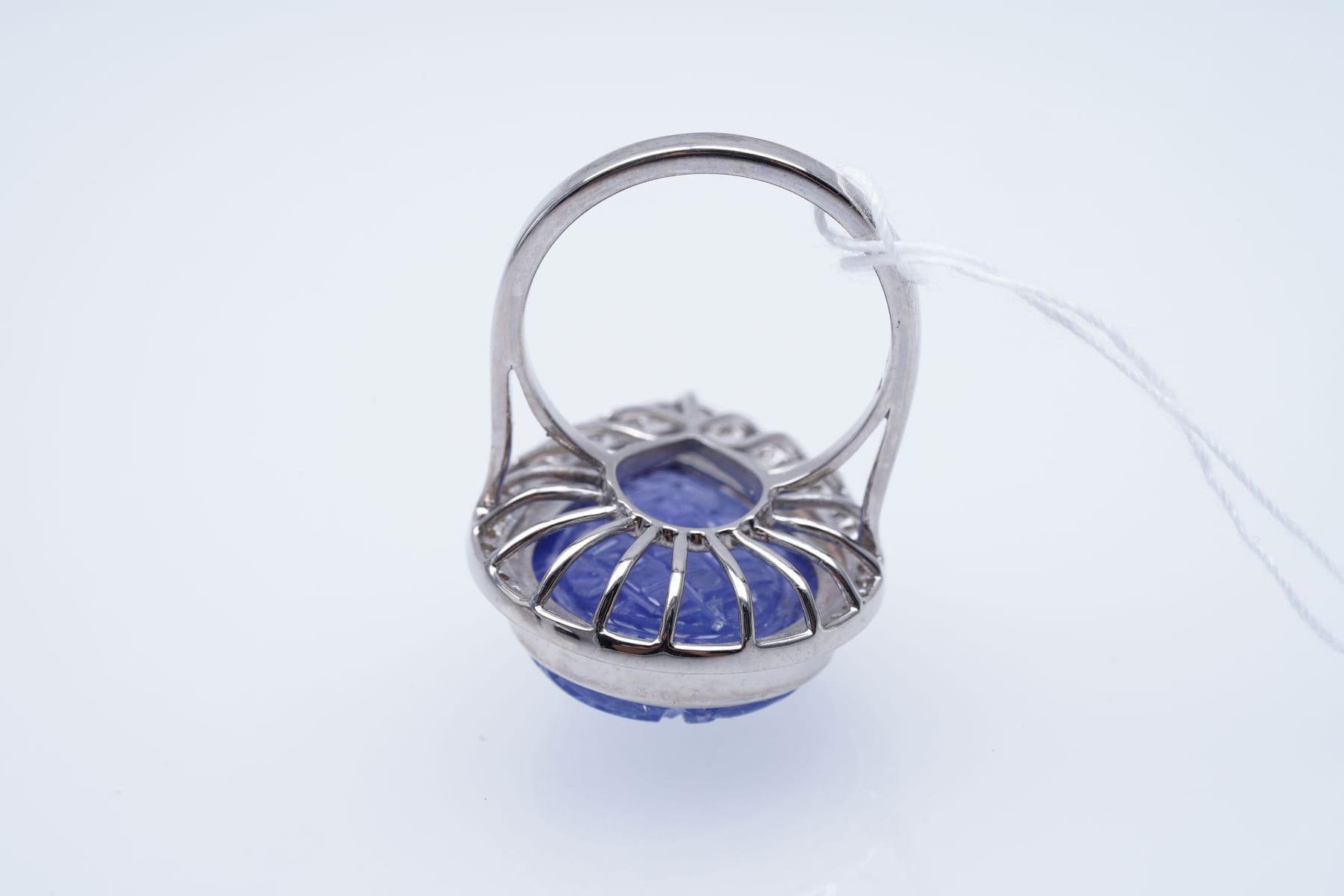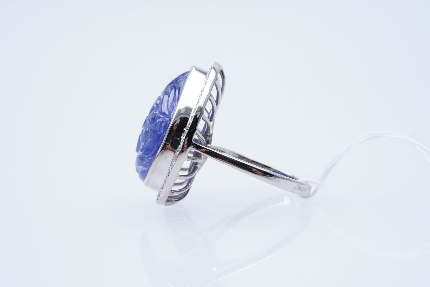 Bilder RING WG 375 / 1000 TANZANITE carved ( 18,3 ) DIAMONDS ( 0,15 ), nro 14880