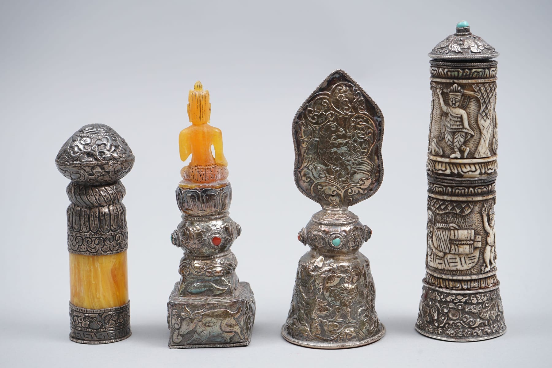 Bilder 4 kpl sinettieimasimia, Kiina, hopeoituja