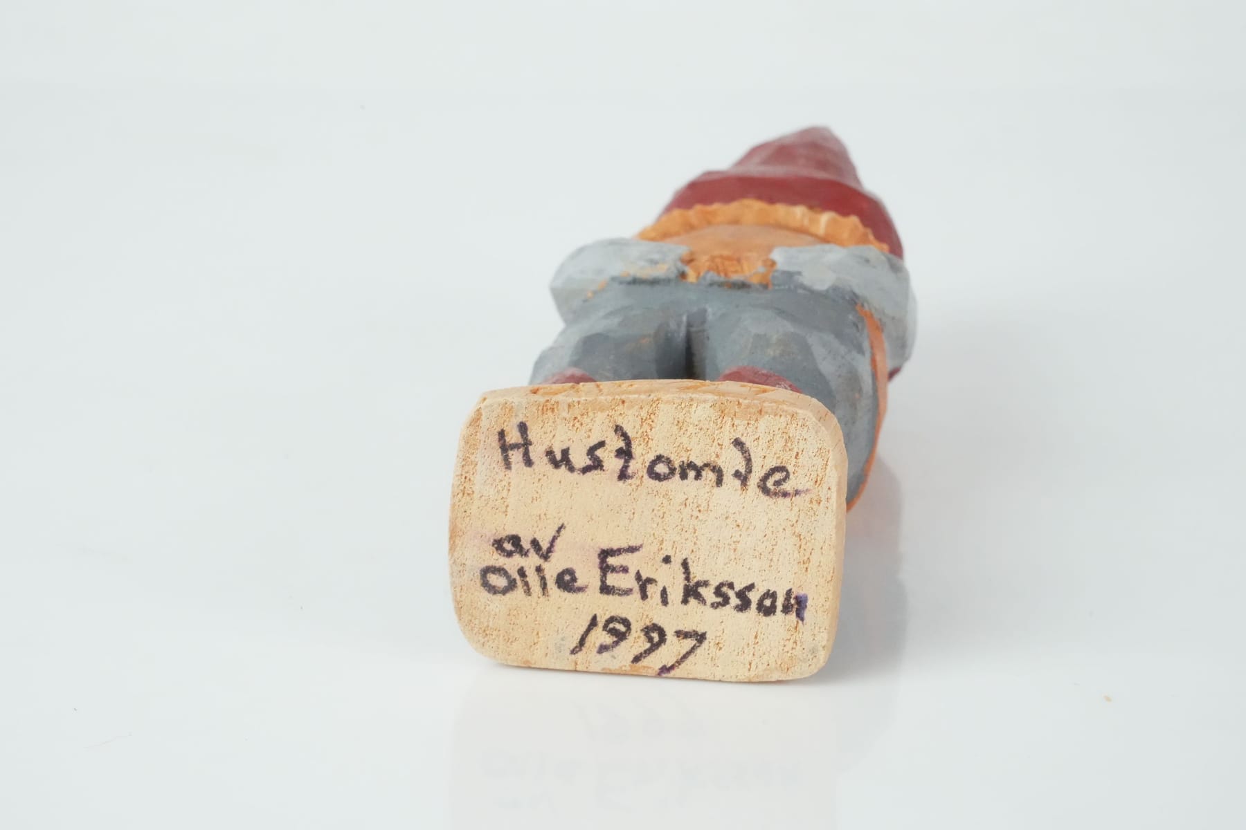 Bilder OLLE ERIKSSON, träskulptur, "Hustomte", skuret och bemålat trä, 1997