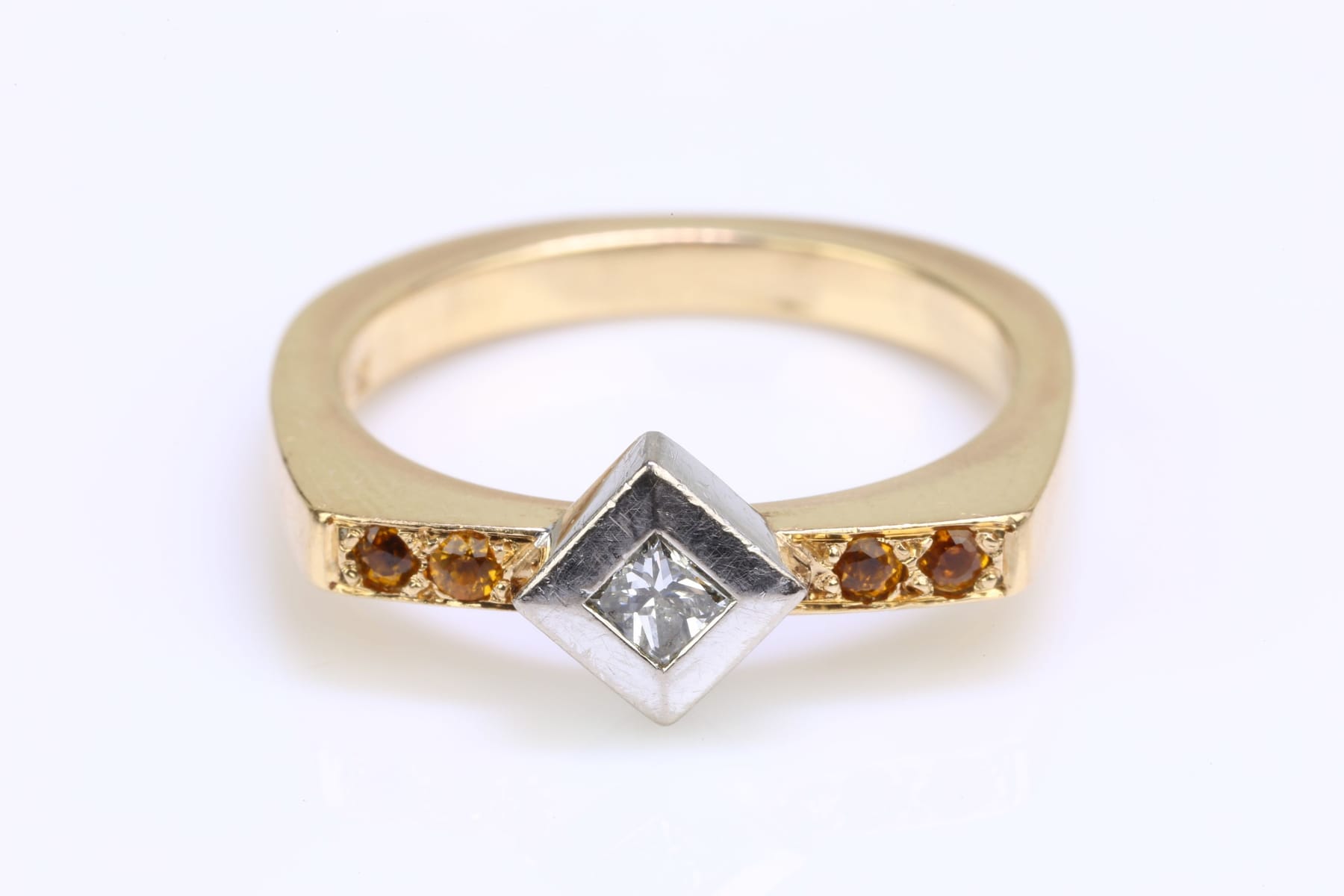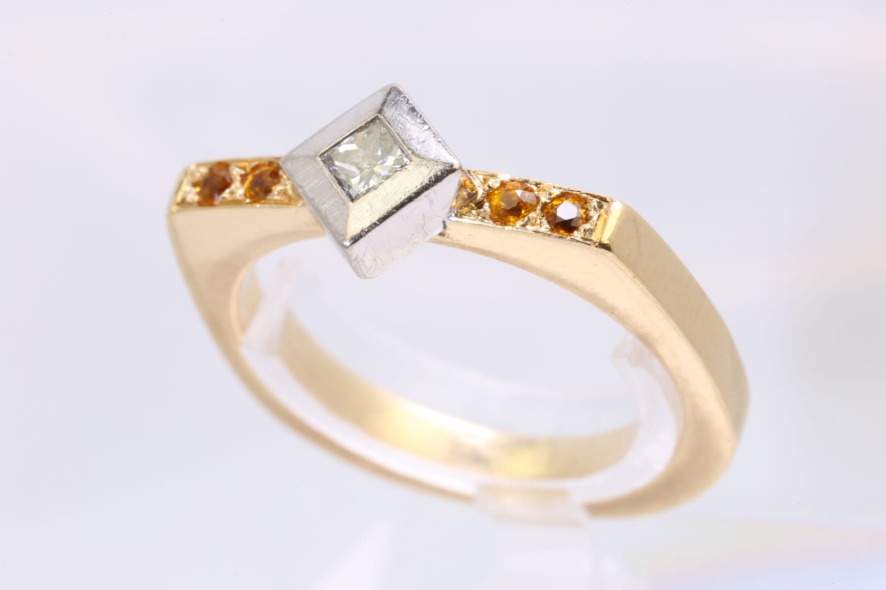 Bilder RING med diamant och gula stenar, guld, 18 k, ca 7,26 g, Carl Larsson Guldsmed AB, Köping, år 2000