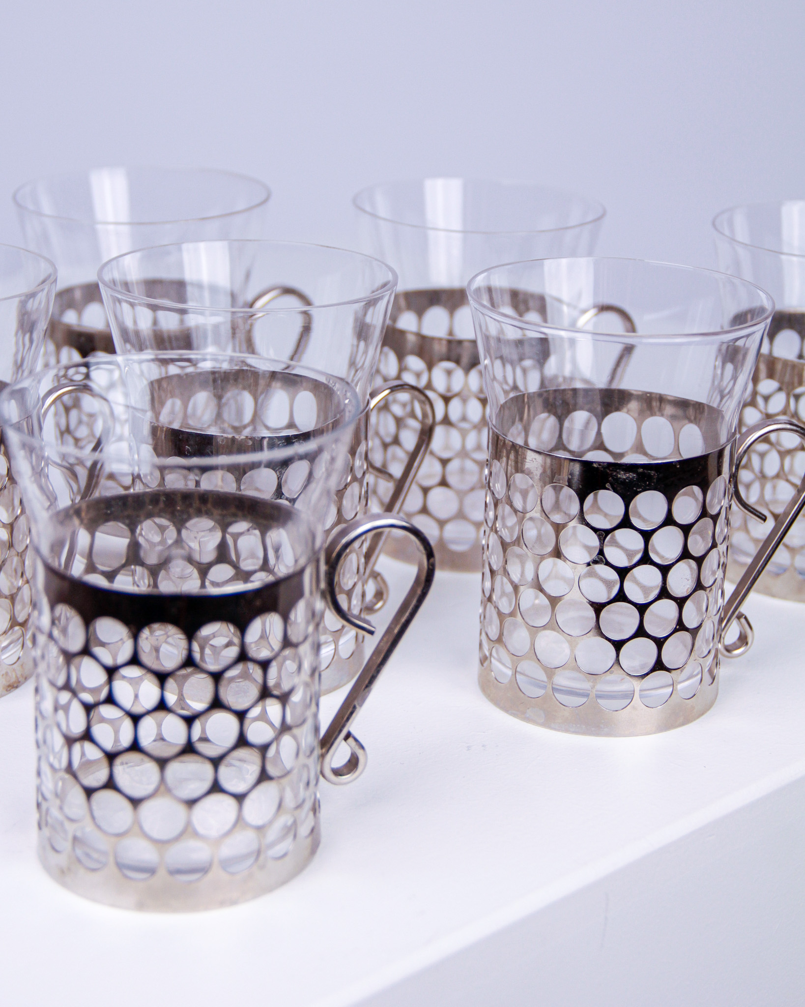 Irish coffeeglas, 8 st, glas och kromad metall (Det dukade bordet)