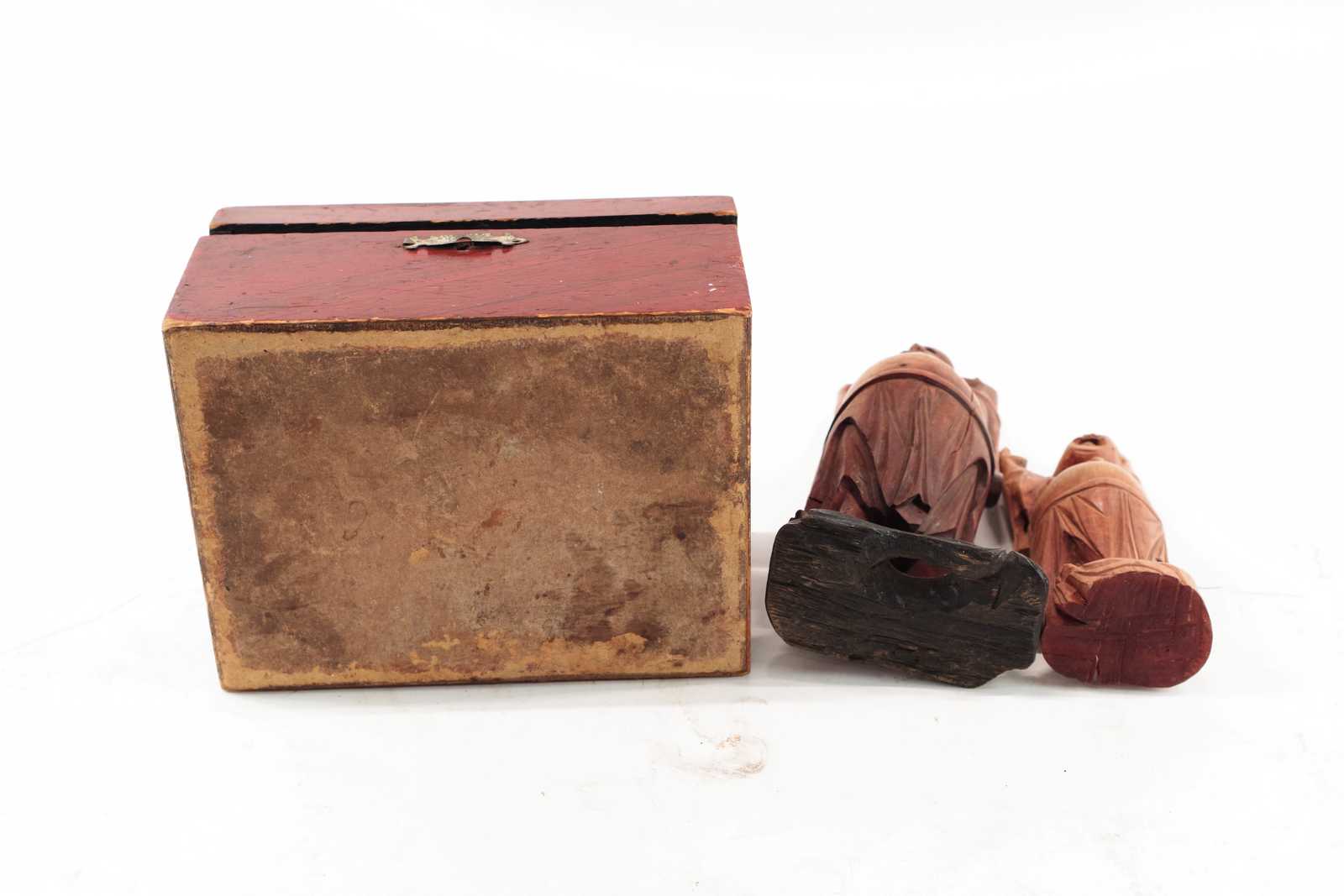 Bilder TRÄSKRIN & BUDDHAFIGURER Största H:19 cm (spricka och skadad tumme)