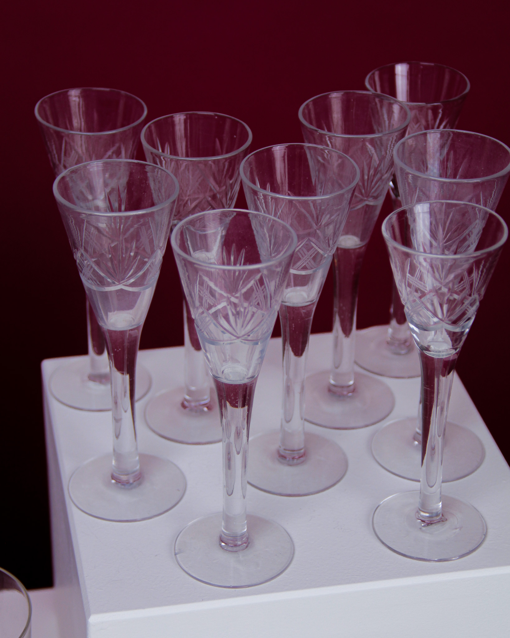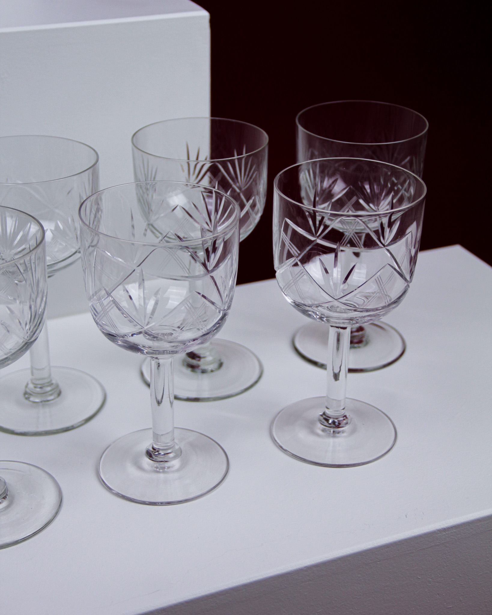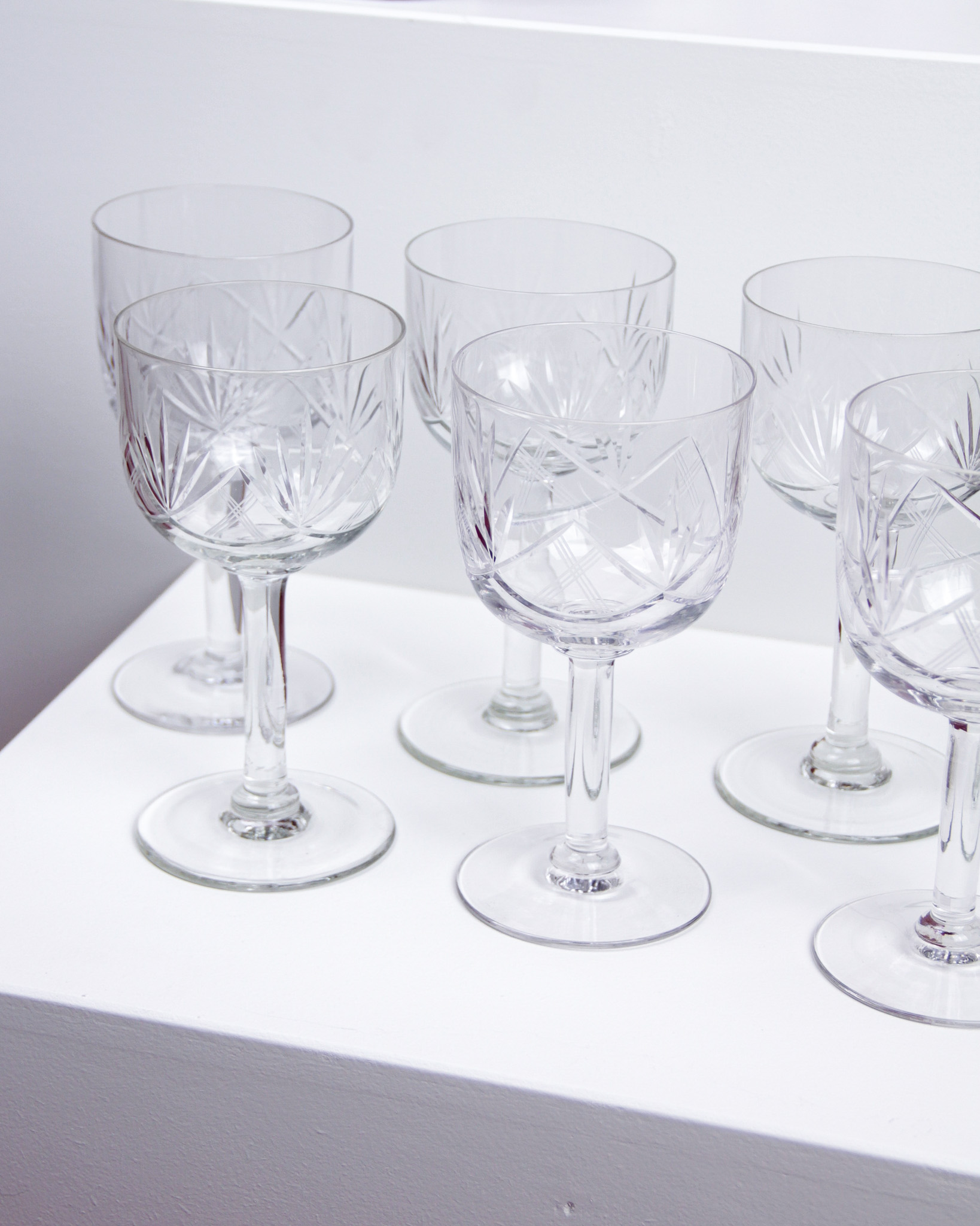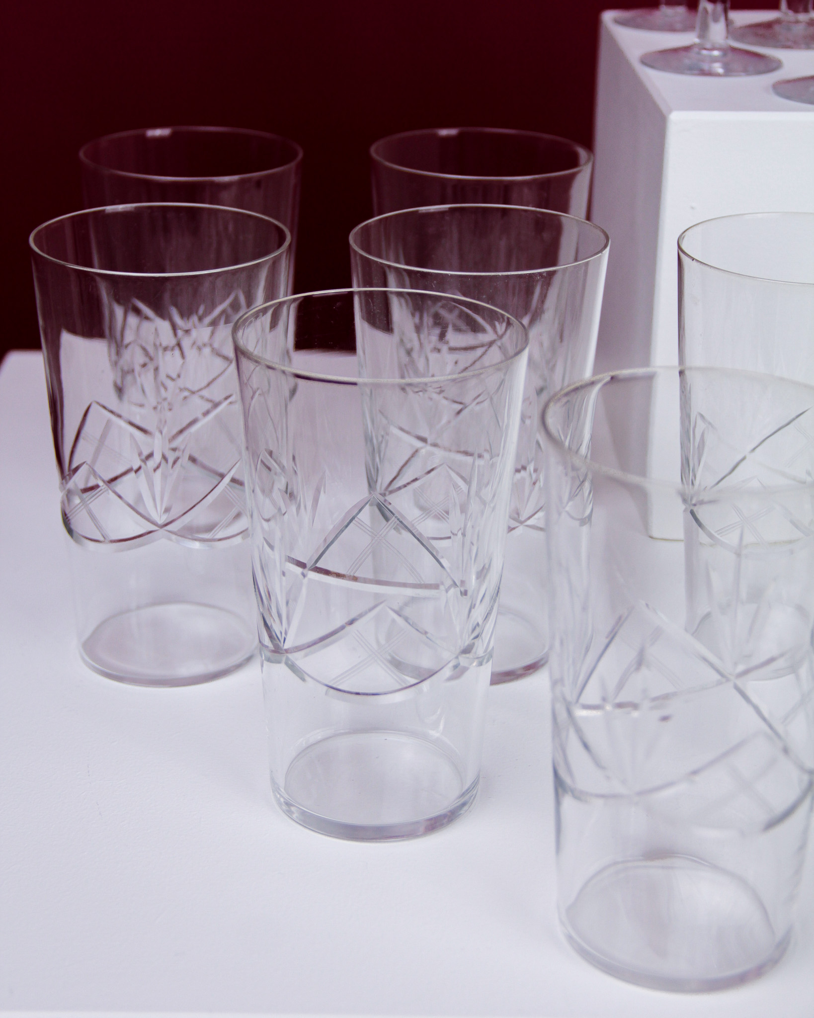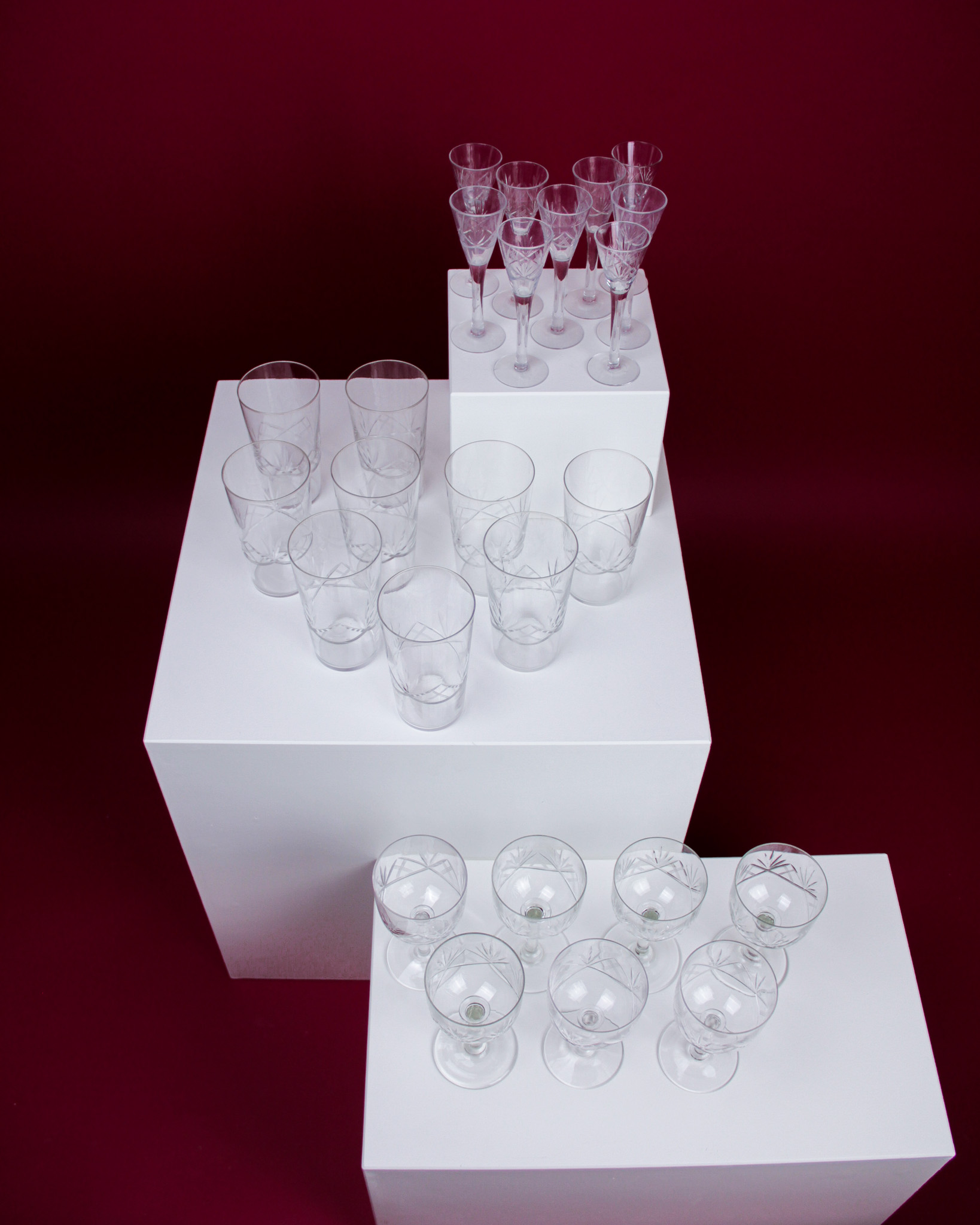 Glasservis, 25 st, glas med slipad dekor, 1900-tal (Det dukade bordet)