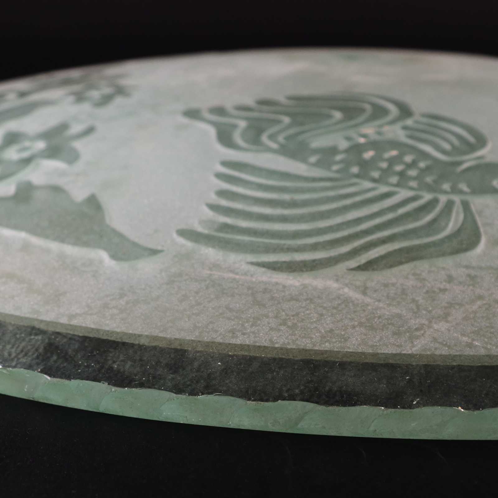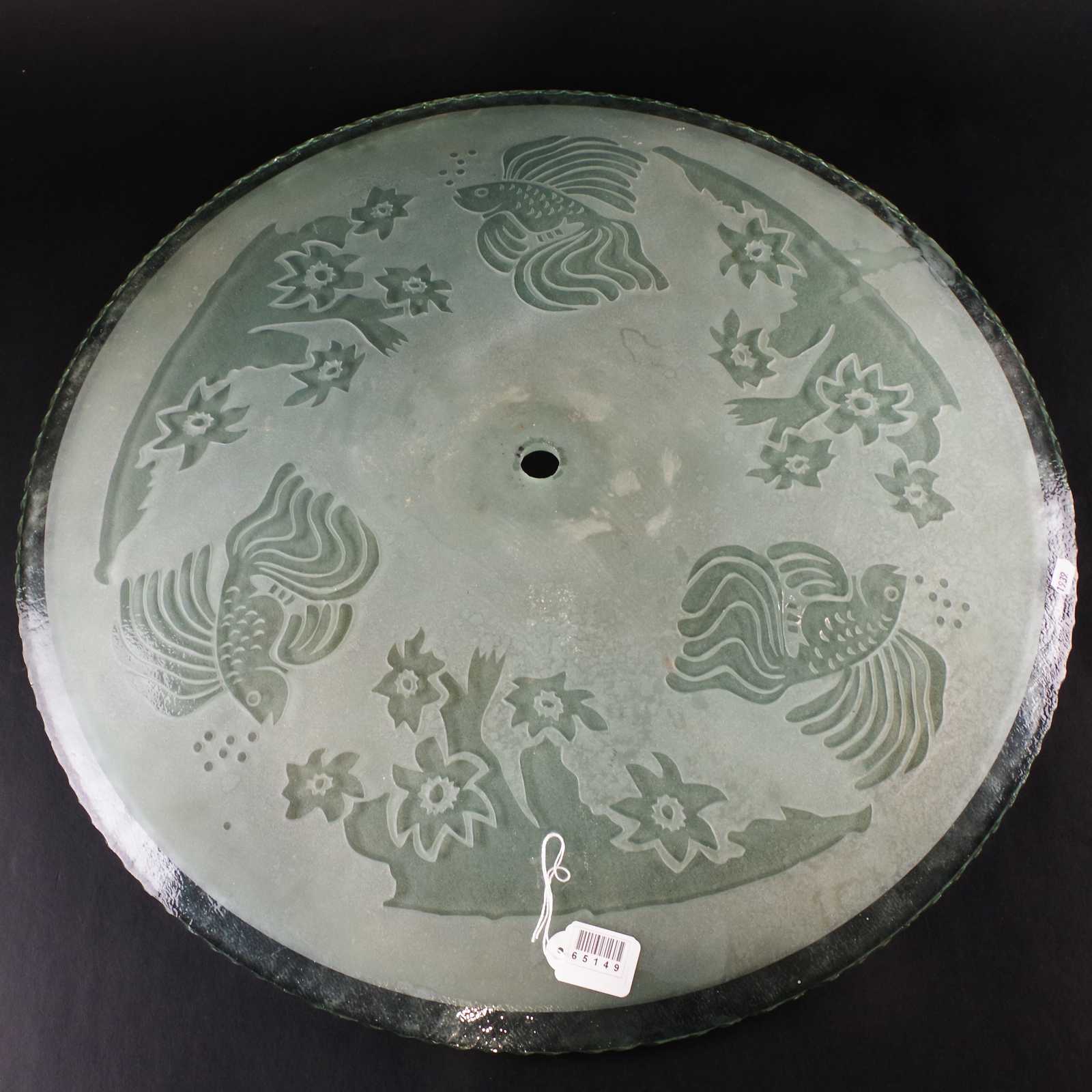 LAMPKUPA Art Deco, råglas, reliefdekor. D:60cm. (nagg)