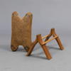 Stoppad sits i läder, hoppfällbar, stomme i trä, 29, längd 57 cm