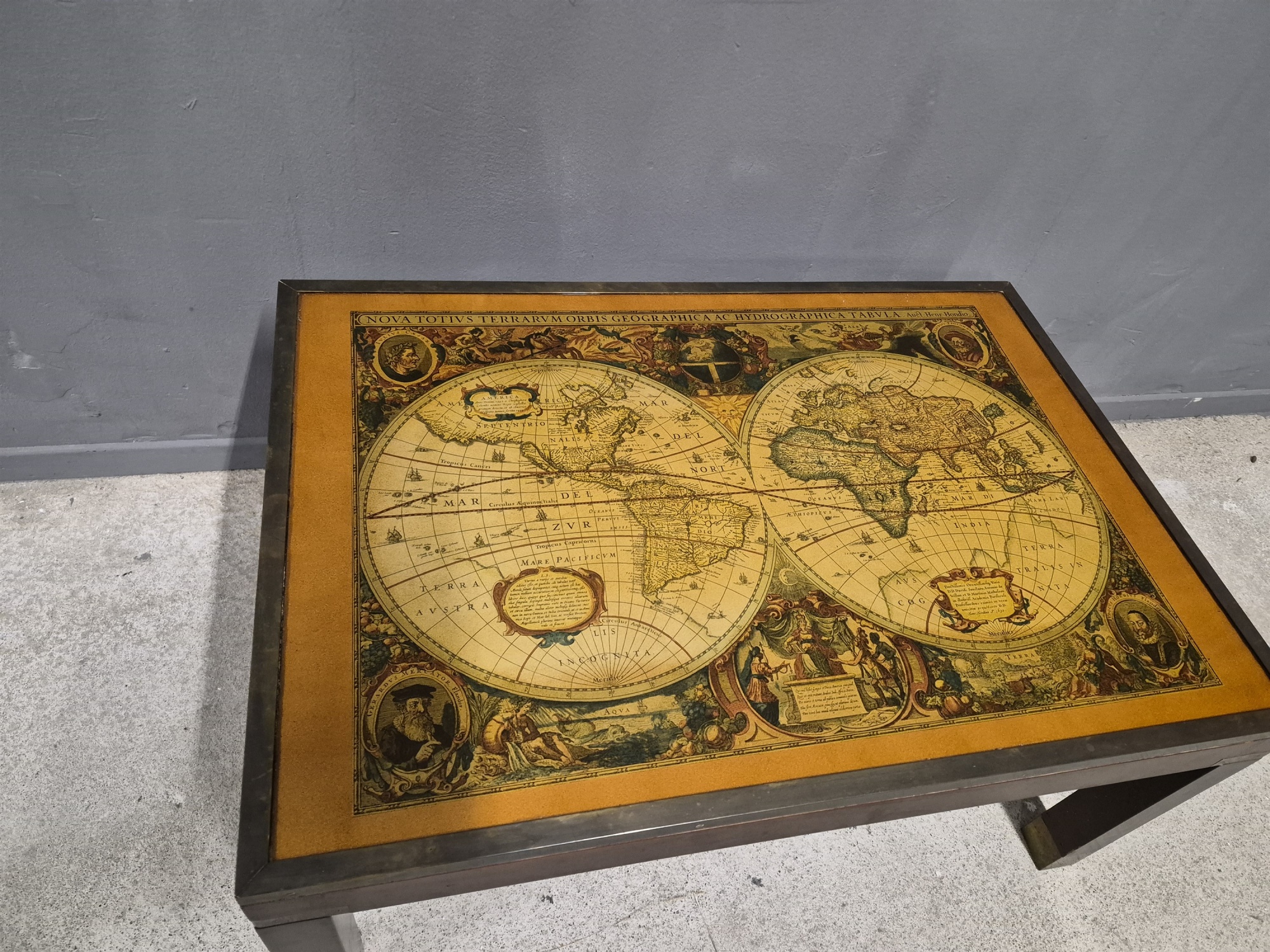 Bilder Avlastningsbord med glasskiva och kartmotiv, höjd 41 cm, längd 89 cm, bredd 61 cm