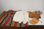 Hätta, Bomullskjol, Linneblus, Skinnväst, Väska skinn & Smycke.