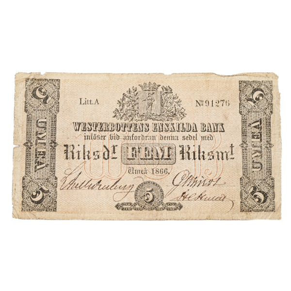Bilder WESTERBOTTENS ENSKILDA BANK. 5 riksdaler riksmynt 1866