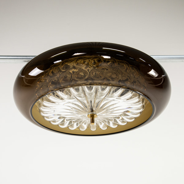 Carl Fagerlund, taklampa av plafondmodell, "Bubblan", röktonat glas, invändig kupa i klarglas, Orrefors, med originaletikett, diameter ca 40 cm
