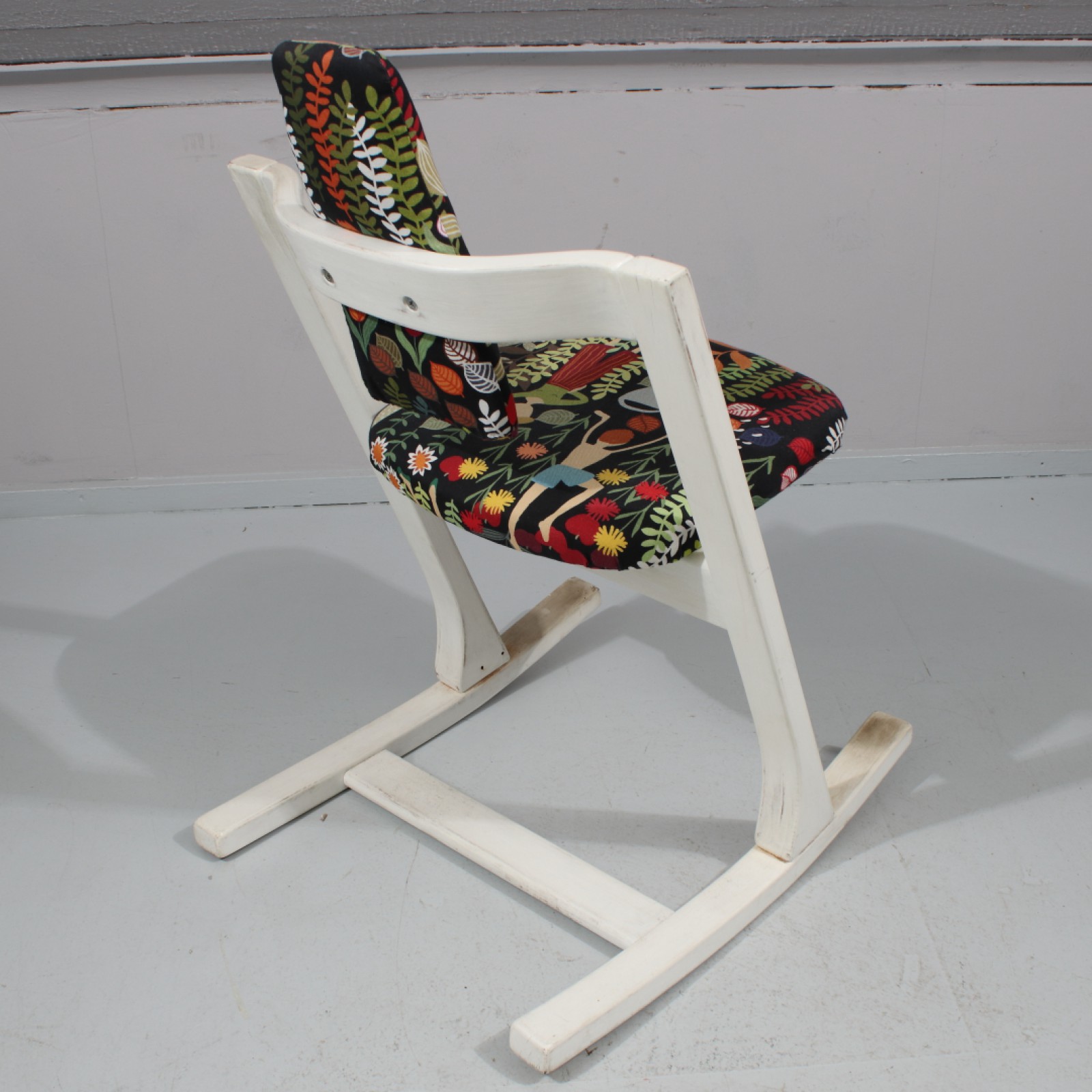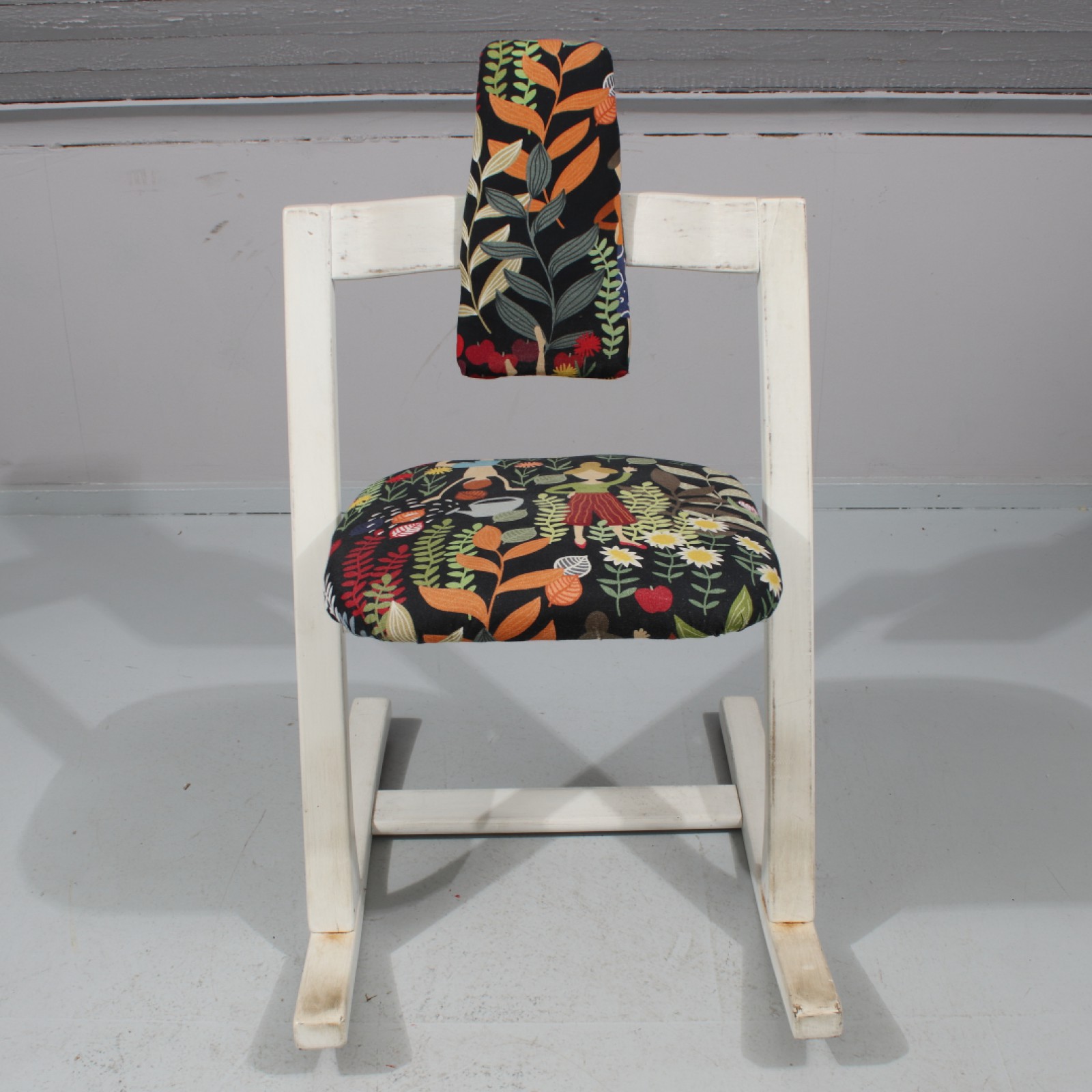 Bemålat trä, Stokke Fabrikker, Norge, 1900-talets andra hälft, senare tyg och bemålning, bruksslitage, Rh.85, B.51,5, Sh.48 cm. (vån3)