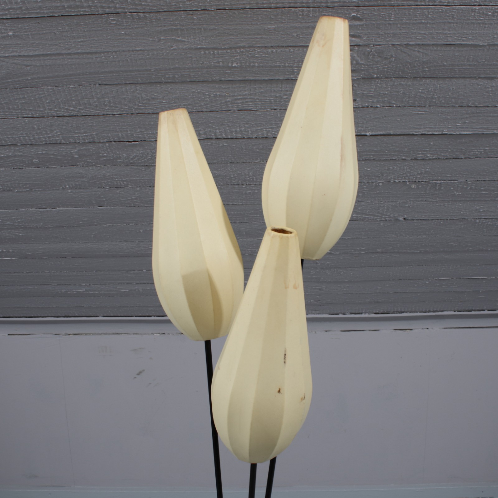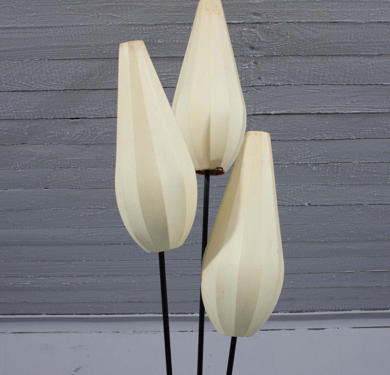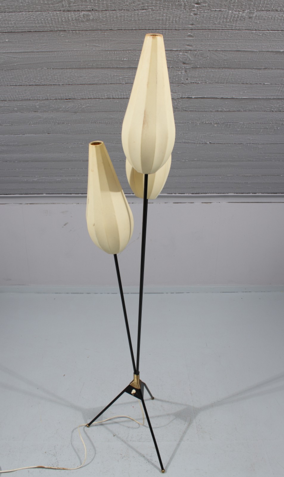 Stomme i lackat järn, skärmar med plast/galon, 3-armad, 1950,60-tal, smutsiga skärmar samt 1st med små hål, höjd 150 cm. (vån2)