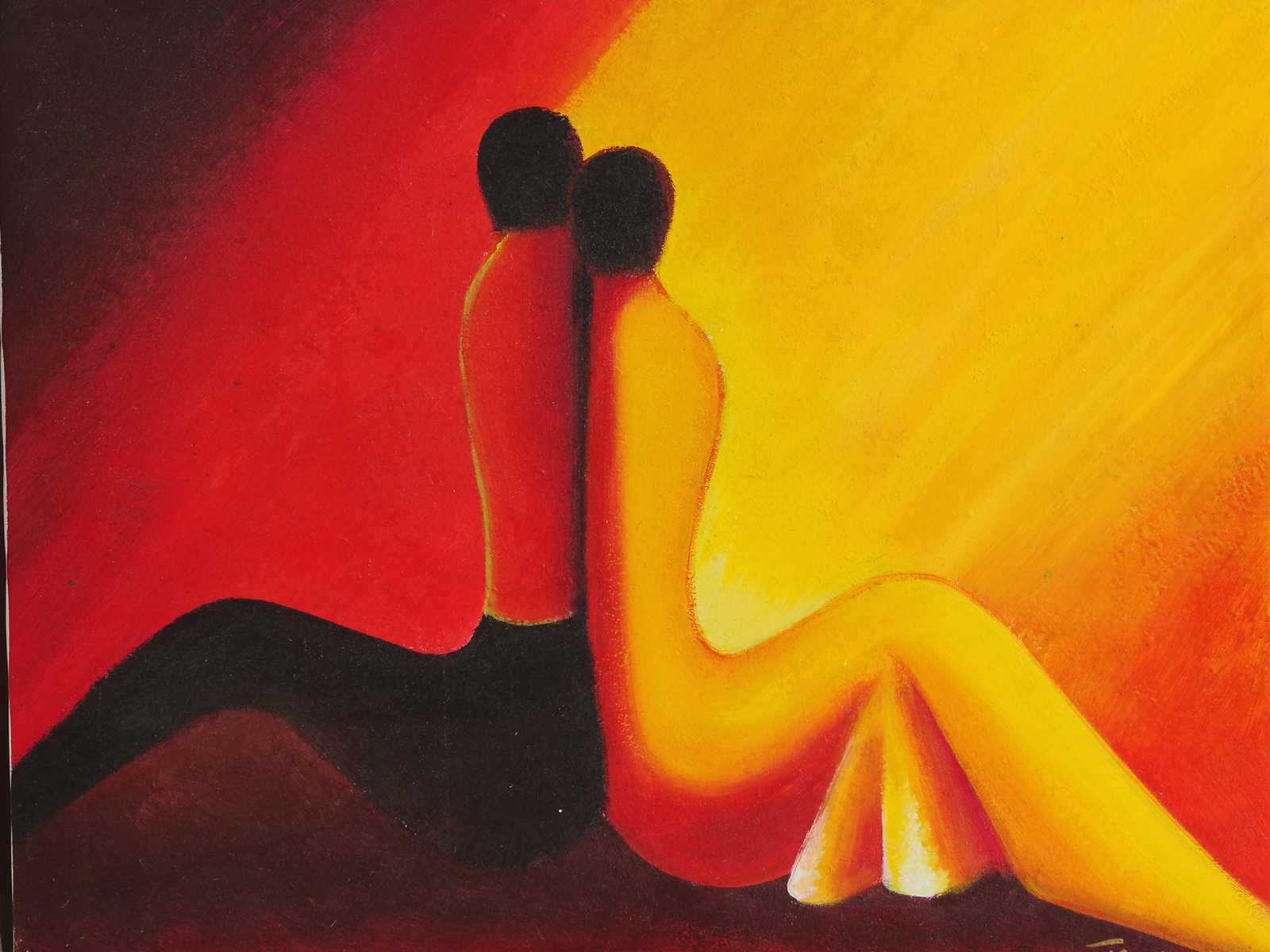 TAVLOR 2st, oidentifierad konstnär, signerade, olja på duk, oramade. 60x50cm