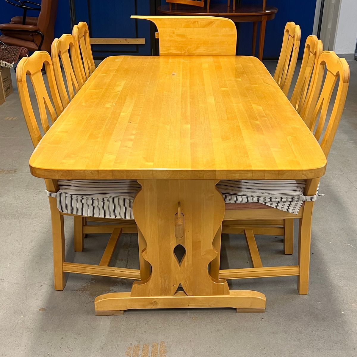 Set med sex originalburkar från Gefle Porslinsfabrik — klassisk svensk tidig 1900-tal-keramik med charmigt lantligt uttryck. Burkarna har lock och är märkta med typiska köksbeteckningar som “Socker”, “Havregryn”, “Risgryn”, “Potatismjöl”, “Ingefära” etc. Den cremefärgade glaseringen med blå dekor och kurviga former ger en fin jugend-/allmogekänsla.