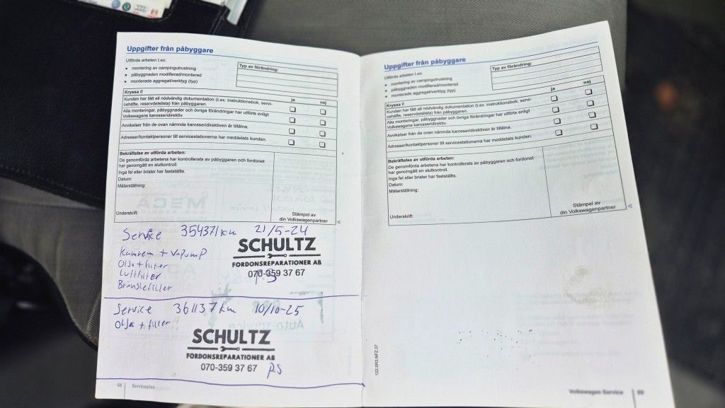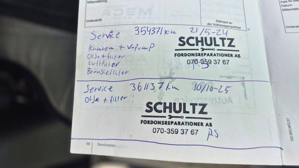 Service med kamrem/vattenpumpsbyte utförd 2024 vid 35437 mil